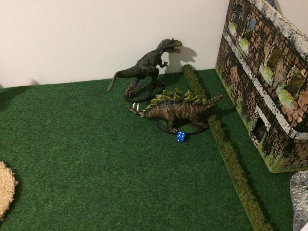 I rolled for a twist, which is a list of things to add more flavour to the game and came out with ‘Desperation’, which means the effects of hits are worse than normal as the dinosaurs are more determined to defend themselves and their territory.