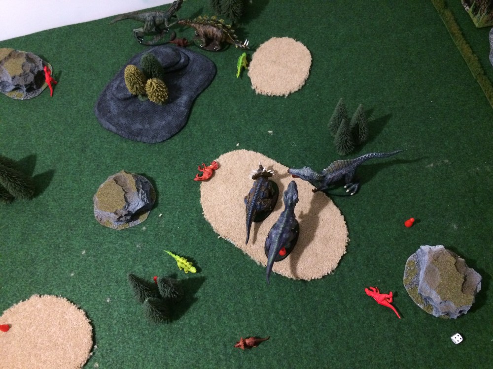 The final turn saw the Carnivores win the initiative and after spending all their ferocity Allosaurus managed to bring down Stegosaurus with a flurry of claws and fangs, winning the game for the Carnivores 3 objective points to 2.