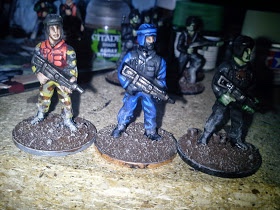 The above the picture is taken from my old long dead blog… it was way back when I first discovered Poundland’s figure offering, they came in a bags of 100 and had that familiar bright orange and green cardboard packaging that read combat… er… something. At the time I was working on some rules for playing out a few skirmish games set in a fictional second American civil war, the factions of which were the government, the militias and a private army of reanimated corpses, each of which is represented above. If you hadn’t noticed each is the same pose, the paint being the only difference. So here’s another image taken some years later: