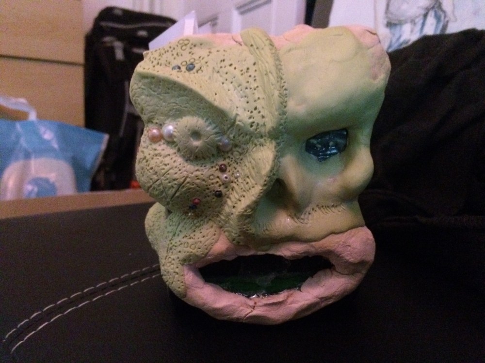 You probably noticed that I’ve removed the tongue, this is so I can make a much better looking one, the top left corner of the face is going to be all skull, and I wanted an eye hanging out of that socket and the tongue giving it a good lick.