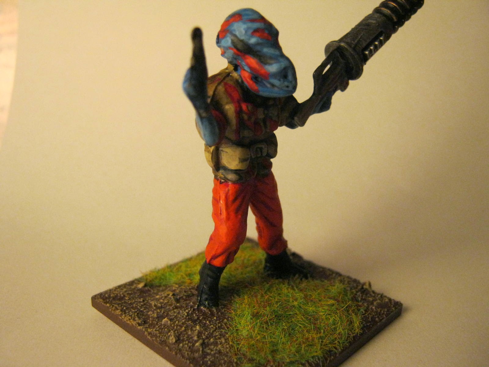 The Khef above is in a similar style uniform to the previous one. He is armed with a standard laser weapon for a support squad.