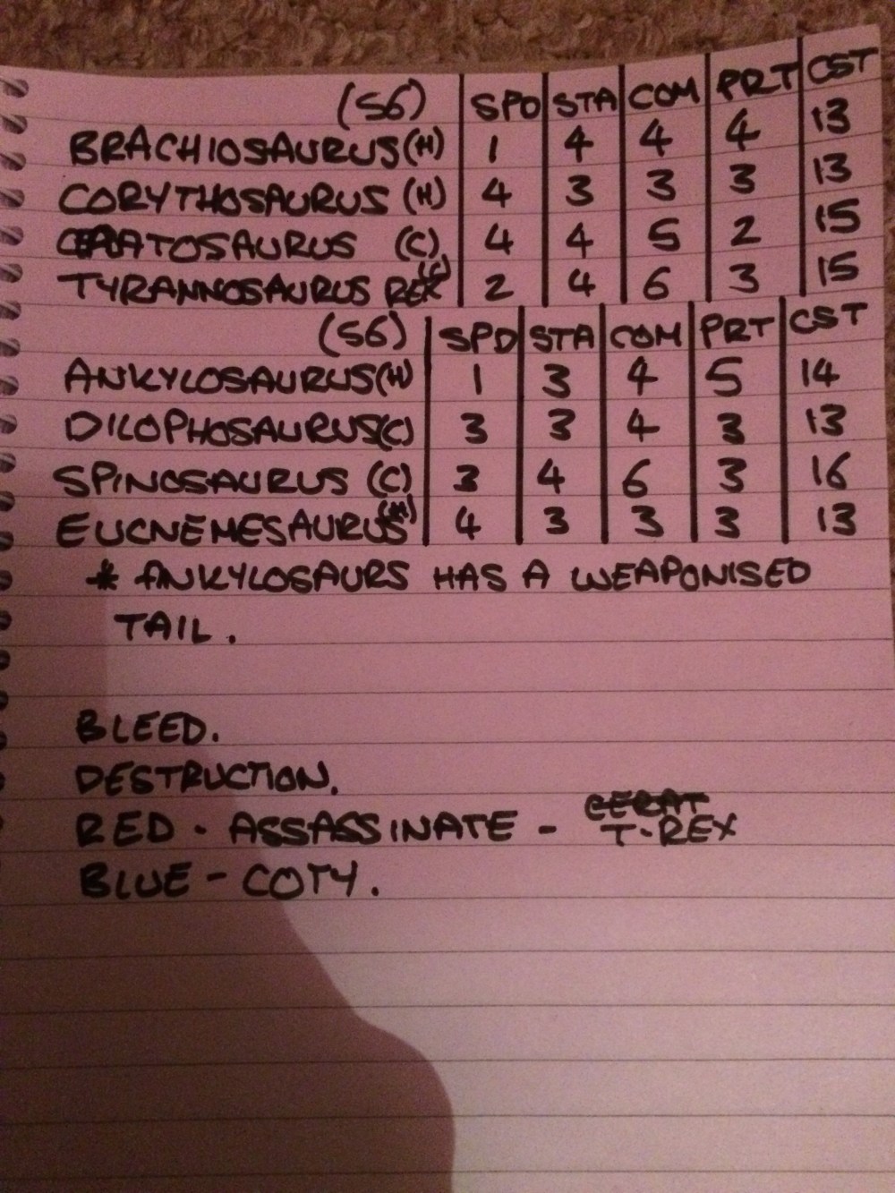 Drew up some statlines for my dinosaurs and played a quick game of 56 points aside using my own home brew dinosaur rules which I’ll be posting alongside my Deathzap rules in the menu above. So if you have some toy dinosaurs give them a go!