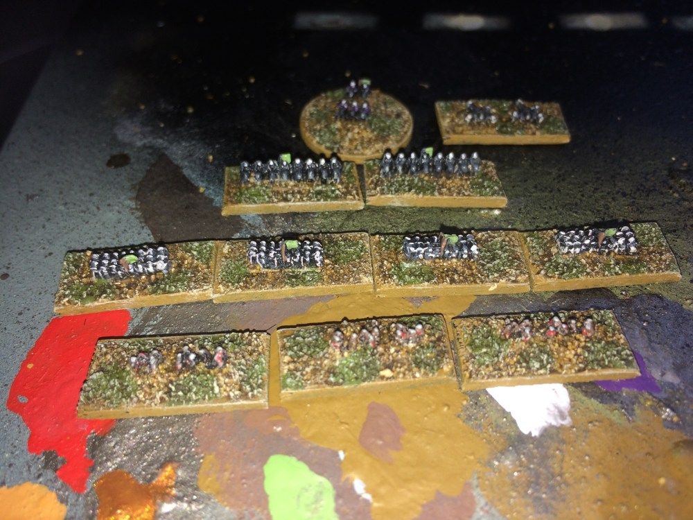 Rummaging around through various boxes I came across a bag of Irregular Miniatures 2mm stuff which I believe were a French Napoleonic army, but I quickly turned them into two fantasy armies and still have a ton of figures left for more projects!
