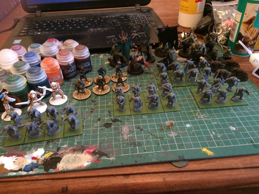 I made an 8 man hand weapon and shield unit, an 8 man spear unit, an 8 man archer unit and a 6 man command unit – the warboss and his retinue.