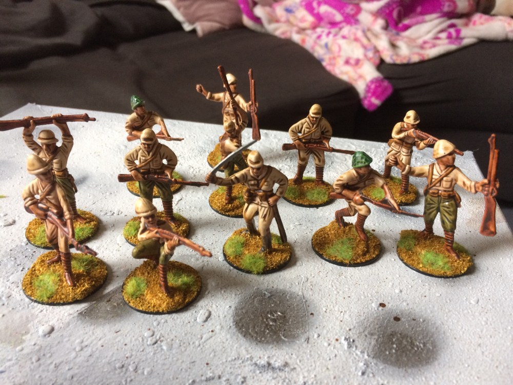 I like raiding local discount shops for figures, 30-40 Airfix ripoff sculpts in a 1/48-1/32 scale for a pound. Above you can see my newly painted WW2 Japanese.