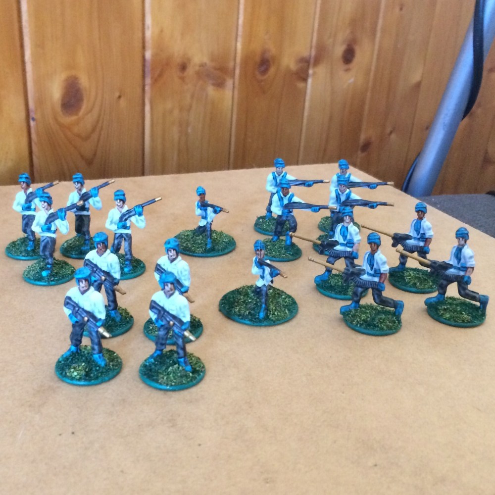 My final force for now (as I really should stop painting and play some games) is a Jendari Collective platoon from Su Khan. Their uniform is mostly unchanged even in the past 800 years as previously seen at the Battle for The Pudding in 1237AC.