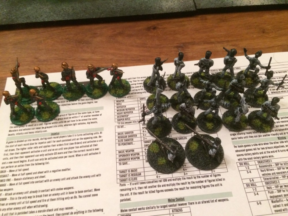 I think I’ve got a good starting point with the rules for Deathzap 2, I’ve added a little more to it so forces now are able to have a bit more personality and there should be a less generic feel to games. I’m currently pondering a mechanic that should be simple and can add even more personailty to the forces so your Allegiance of Gnossos troops should behave rather differently from your Solar Raiders. At the start of each turn you will roll a die per unit you have in play, those dice can then be attributed to units (one per unit only!) to either allow them to perform special actions or boost the actions they would normally carry out. For example a 6 attributed to a Gnossian unit may allow them to teleport 6″ from their current position, whereas a wargang of Solar Raiders might fire twice that turn.