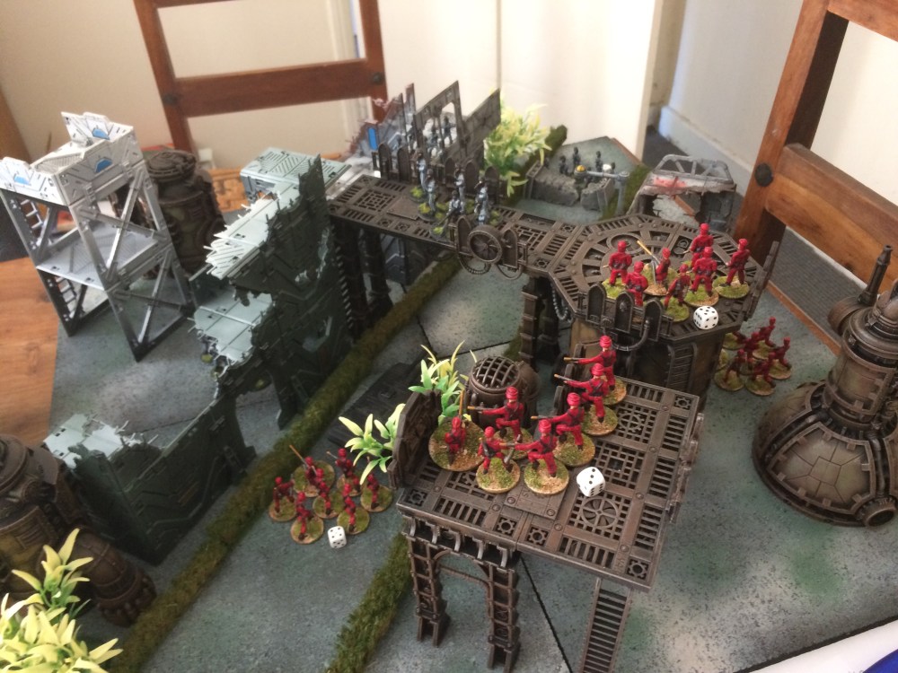 First had climbed the structure behind us, they were a rifle squad and so could more easily pick off targets at range. Second had pushed round the right flank.