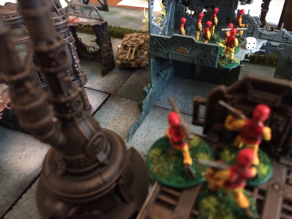 But Silas had other plans. he pulled us on a flanking manouvre. We took cover on a doorway but a Reddinist squad spotted us and opened up. We lost three to the first hail of gunfire. I’d barely met them, but they were still Legion. Their blood was my blood. Silas didn’t even notice them fall.