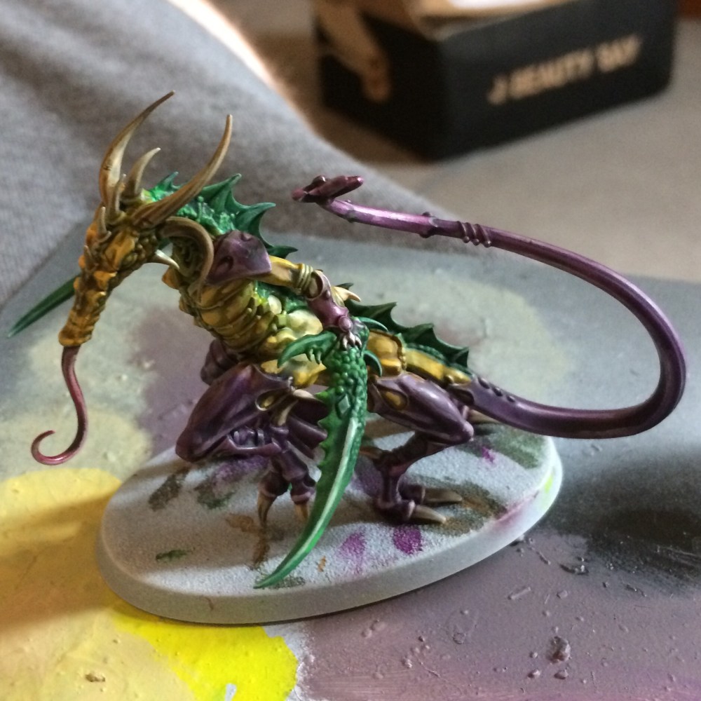 I wondered if acrylic inks would give a better effect over white primer than Contrast paints, and judging by the image above I’m sure you’ll agree the answer to that particular quandary is no.