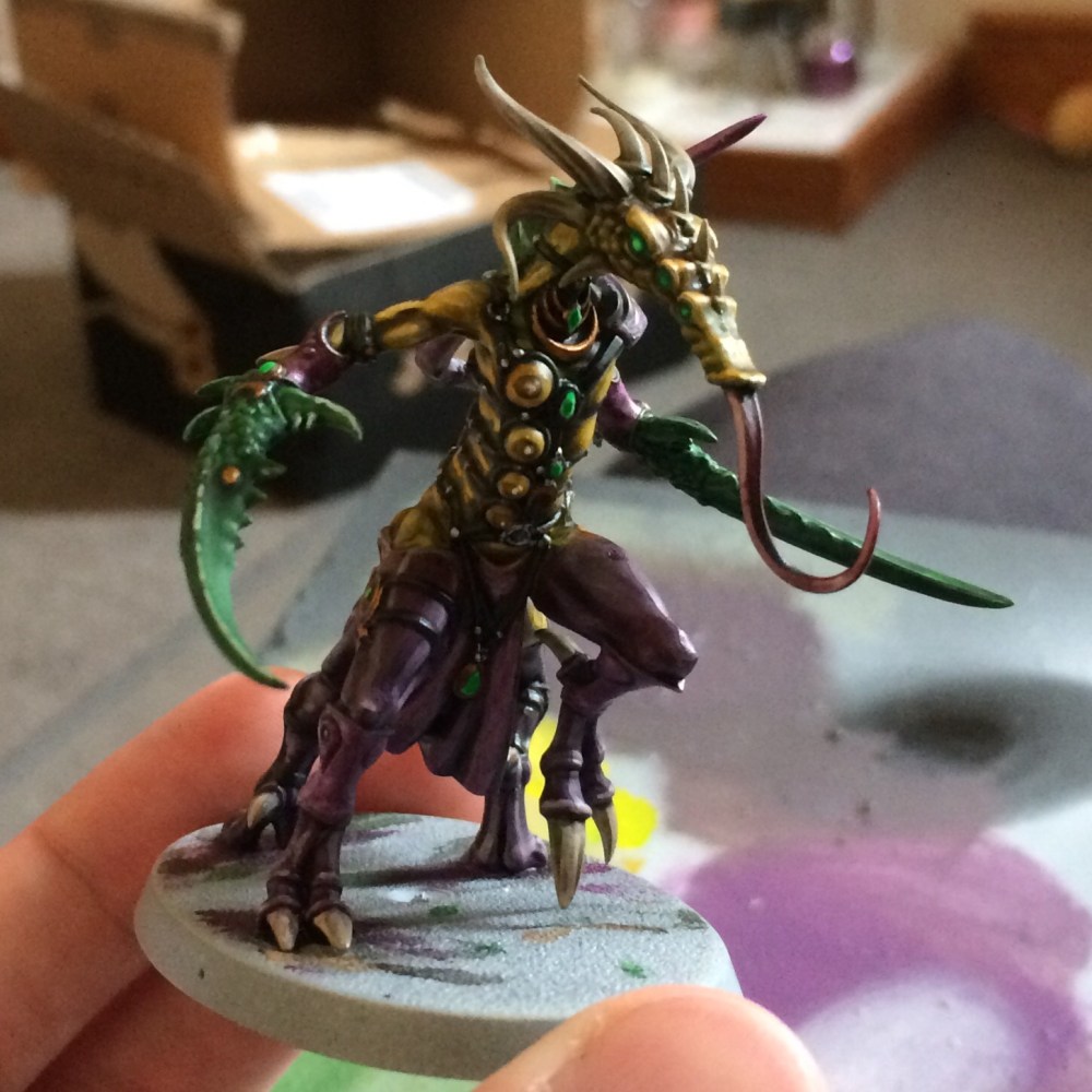 Another batch of detail festooned models from Games Workshop to get through… I’ve got two more to paint yet before the unit is finished. My plan with the remainder of the unit is to paint each one with a different although similar colour scheme. People often mistake Slaanesh as being the chaos god of sex or sexual perversion but this is not the case. Slaanesh is the god of excess. Fulgrim, Primarch of The Emperor’s Children would often be found listening to several deafening pieces of music at the same time because one wasn’t enough. I want my paint scheme to express that.