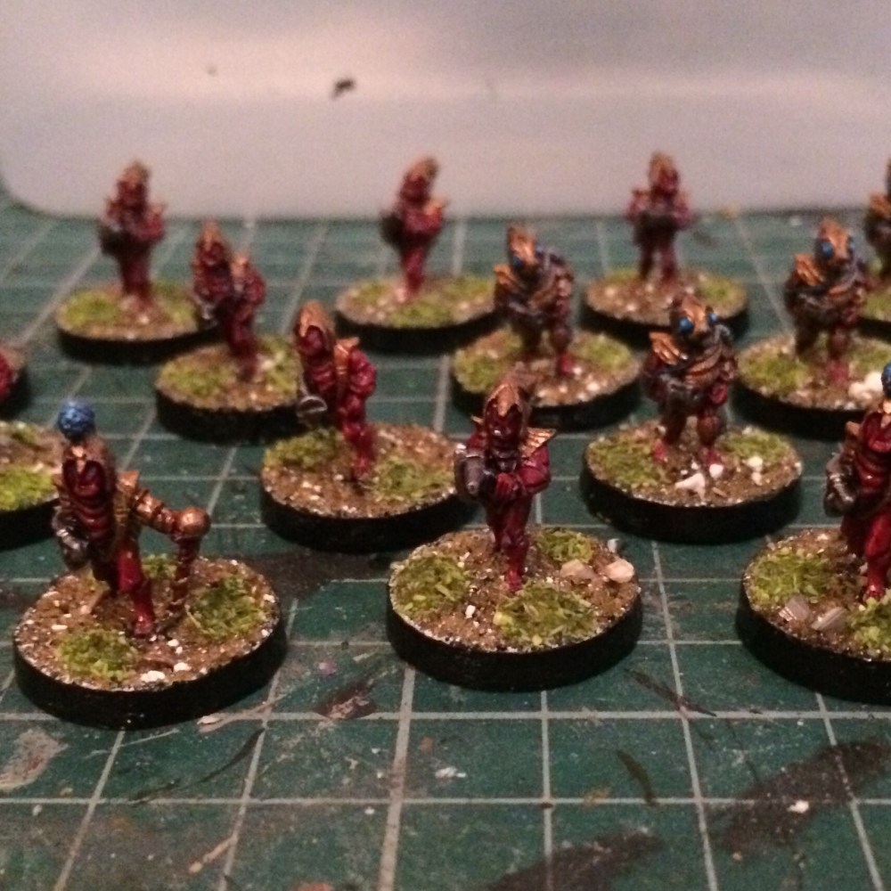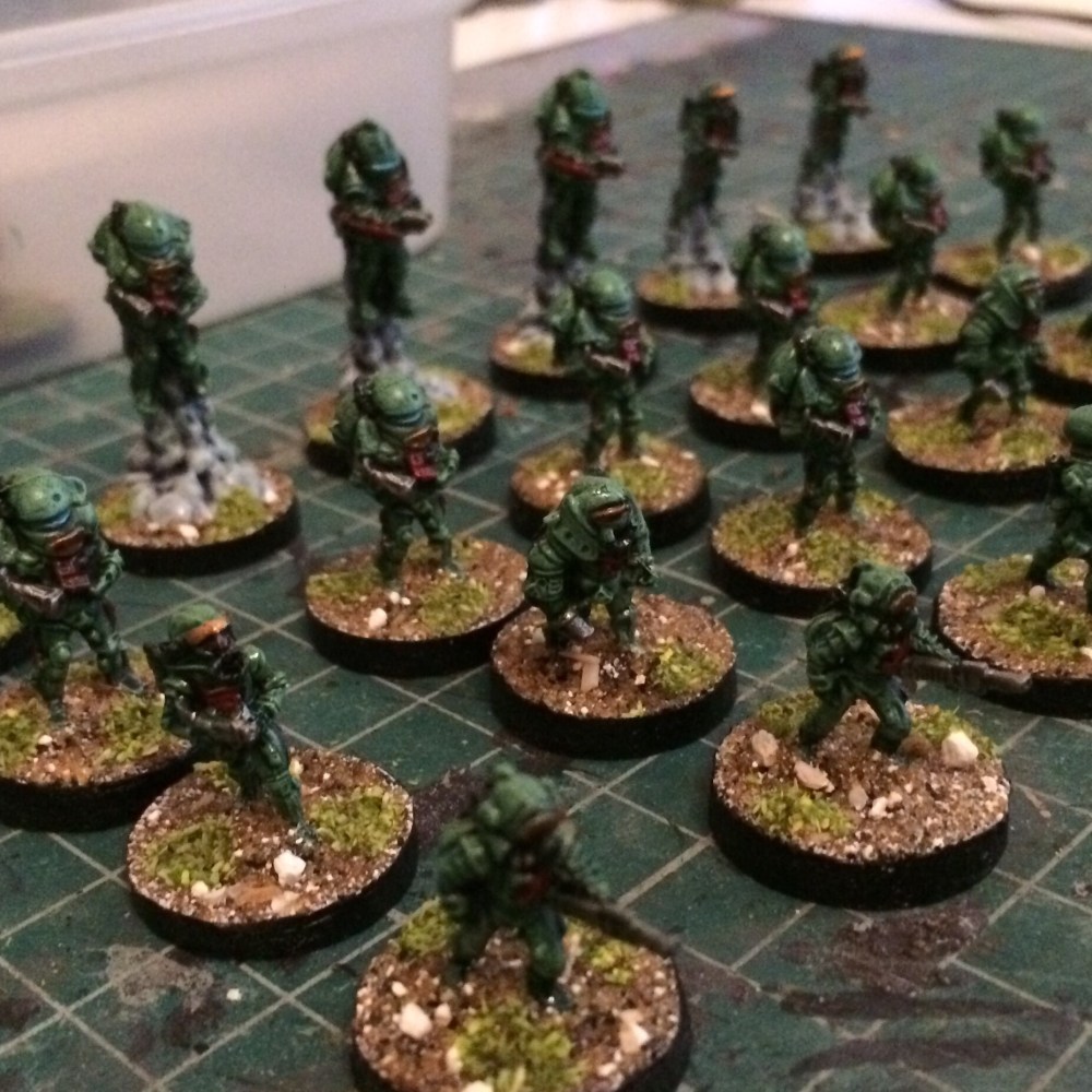 So I’ve finished my little 15mm fellas from Asgard (now from Alternative Armies) originally for Combat 3000 which as I stated in my previous post I probably wont be using them for. Combat 3000 is a very complex and complicated system which is why it was originally for generic sci fi RPGs and not for platoon level skirmish gaming which is what I like most. I couldn’t imagine the book keeping of each of my 40ish miniatures in play having their own record sheet. It might be rewarding in the end to have played a skirmish like that, probably making use of my laptop rather than that many sheets of paper spread out all over the room, but it would probably take a week to play out a minutes worth of action, so it’s just not for me. Hopefully my Laserburn Imperial Commander rulebook will show up soon, it’s much more my speed, or alternatively I’ve also got Use Me Sci Fi.