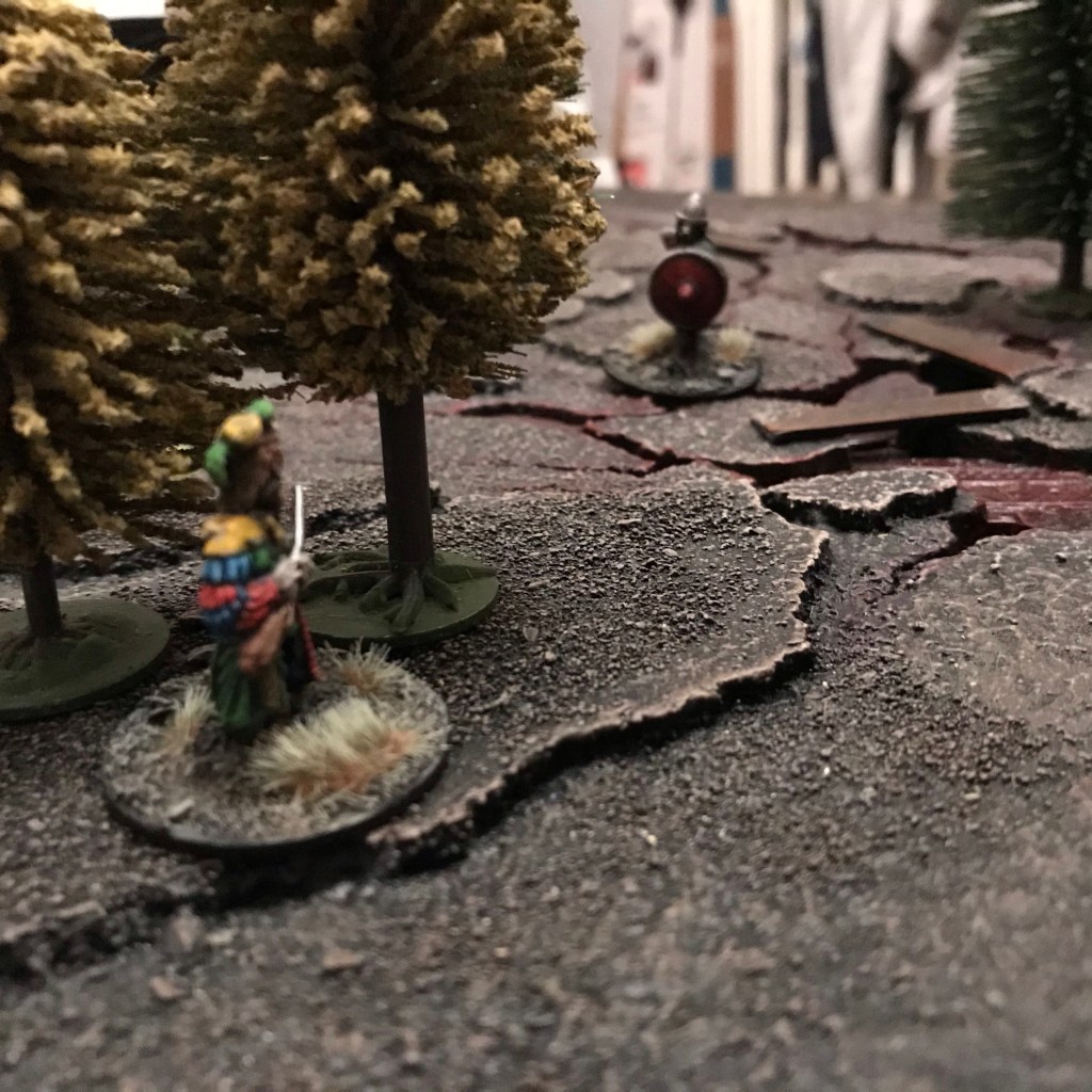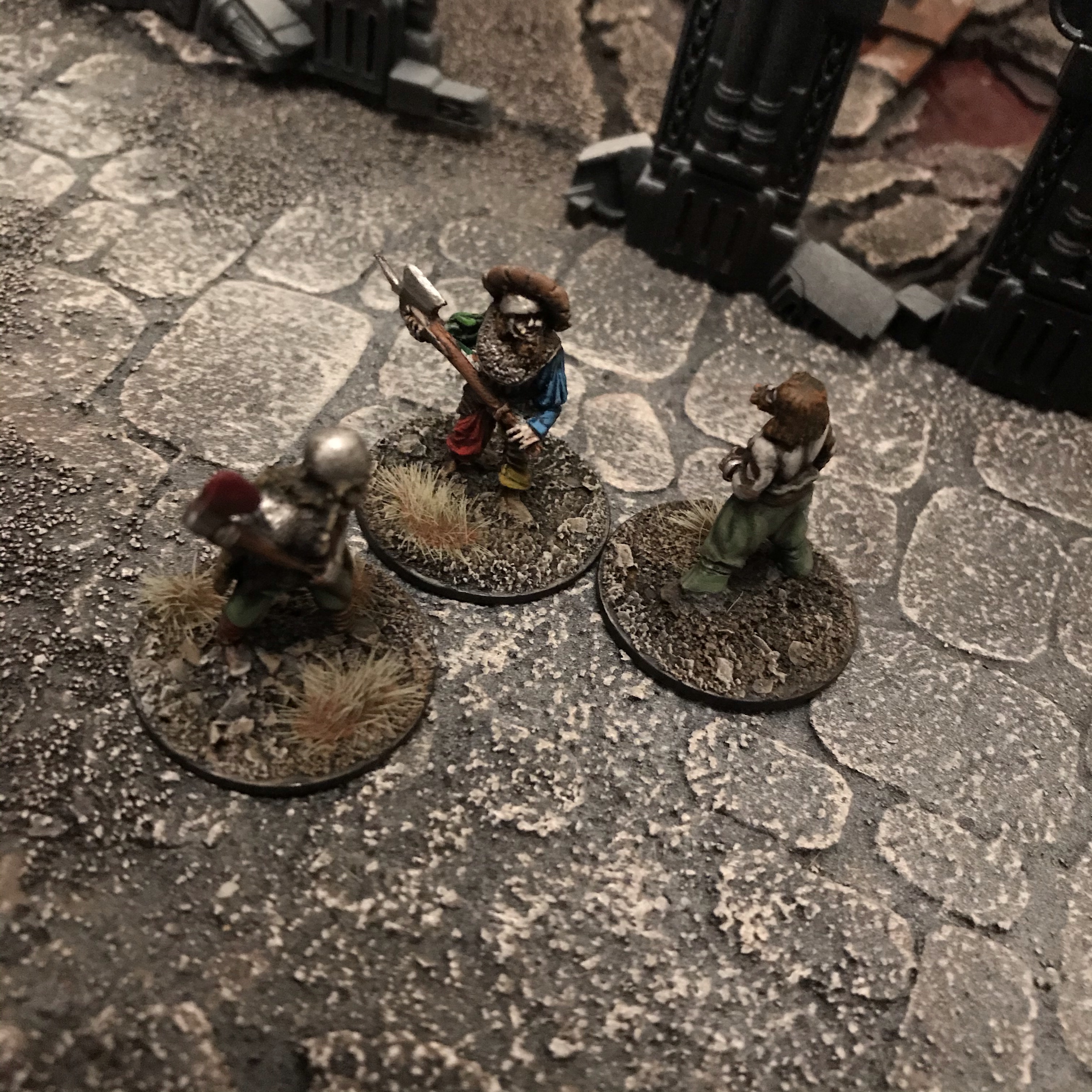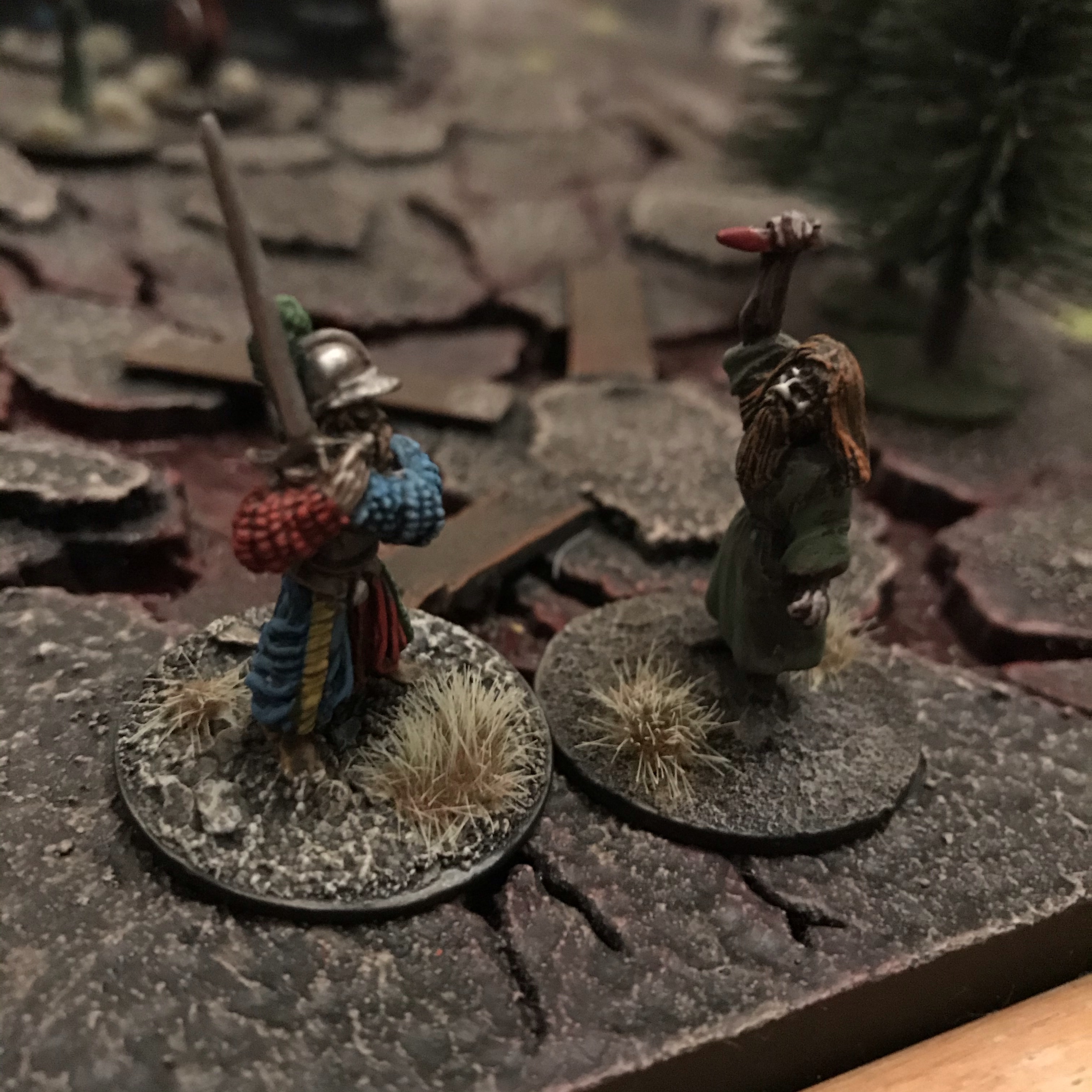 After posting on The Simple Toy Soldier Game and thinking that I’d cracked small skirmishes with firearms. I had to consider by other great gaming passion: small skirmishes with pointy objects. Darkfell was a rule set I put together about a year and a half ago that was supposed to mimic the feeling I got reading old Mordheim battle reports in White Dwarf, because as it turns out, Mordheim is actually quite different from what my childhood mind had envisaged. Darkfell never really reached those heights for me, so after I had put together a few warbands using figures from Irregular Miniatures I mostly gave up on it.