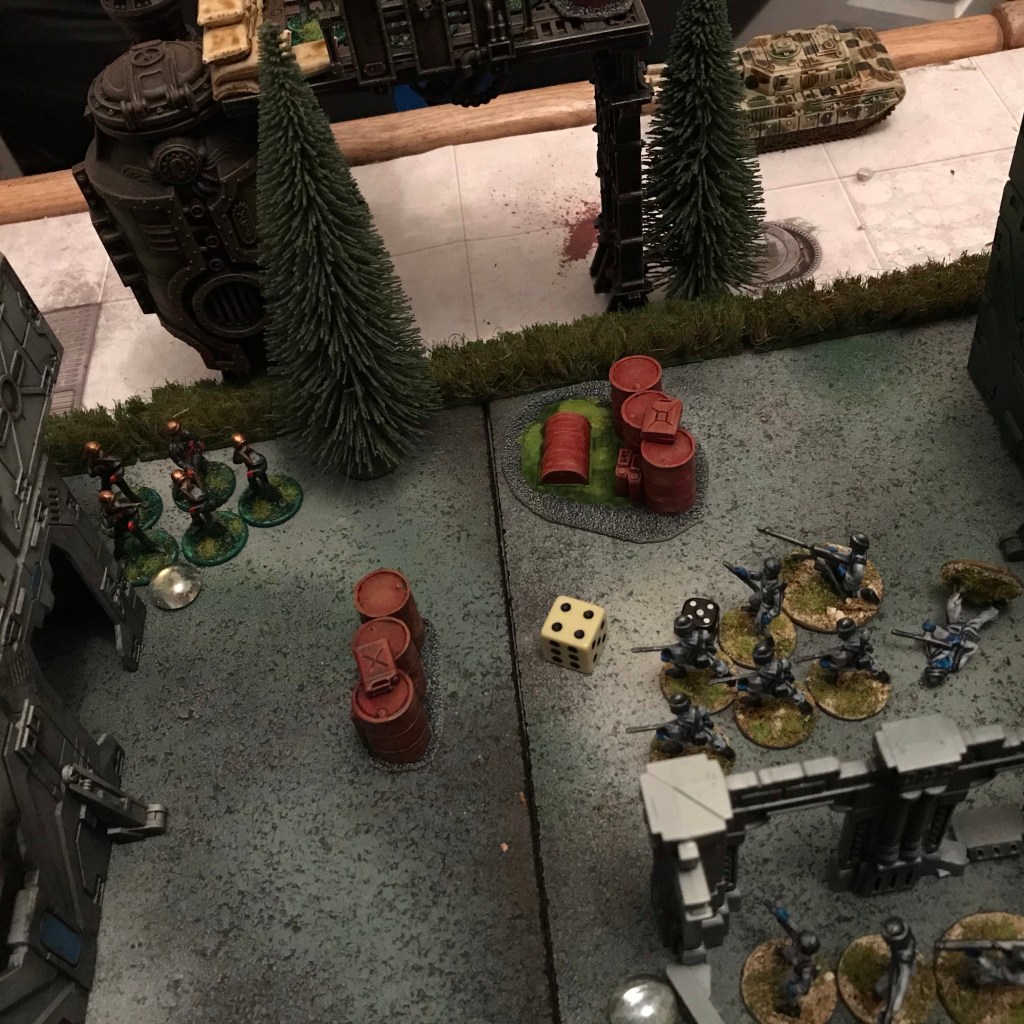 My latest solution was to limit he effectiveness of weapons, but that has kind of reached its limit. Here’s where the 6 sided die issue comes in. I’m always a fan of modelling the effects of cover in my games. Cover after all is fairly important in modern warfare. But the best I can do on a 6 sided die is make you hit on a roll of 6. That is without adding extra complication to the rules which I also don’t want. Hitting a target in hard cover on a roll of 6 then means you hit guys in soft cover on 5s or 6s and in the open on 4s, 5s and 6s. Throw in the effects of automatic weapons, buffs to various forces when they shoot and your units are taking lots of casualties fast and your pushing the humble D6 to its limits.