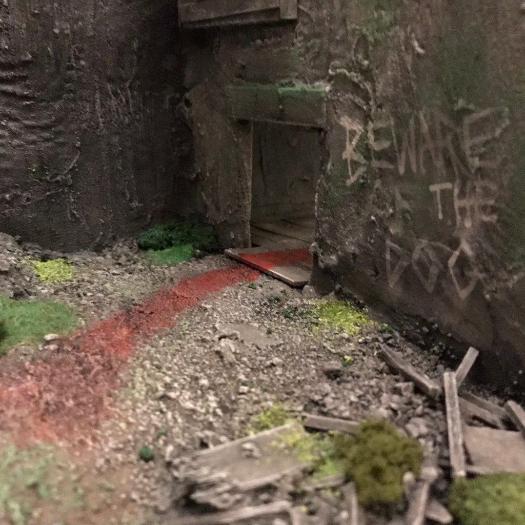 I’ve asked my mates what else I could add and one suggested a stove or heater, I’m not sure how I would accomplish that with what I have, but it did give me the idea of adding a camp fire. Maybe the aftermath of a group setting up camp that were then ambushed and killed? He also suggested posters which I’m going to definitely add at some point.