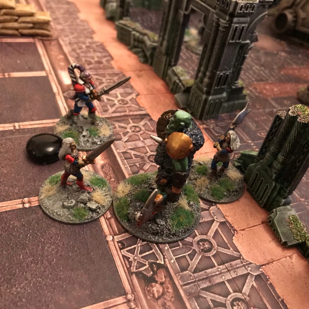 Moving forward I think it might be worth removing the whites and having each figure act immediately, allowing greens to be used for defence from attacks so they don’t become useless once you’re locked into combat, but maybe two greens are required to block 1 point of damage (so they’re not obviously better than blue). Or a green allows you to leave a combat but you only move away 1” allowing an enemy to follow up without too much difficulty if you don’t get away first. Also for ranged combat maybe being outside of 12” gets a defender a bonus blue, and/or being in cover. I’ll probably throw one white in that puts all the counters back in the bag for added randomness. Or maybe other white counters for random scenario conditions.