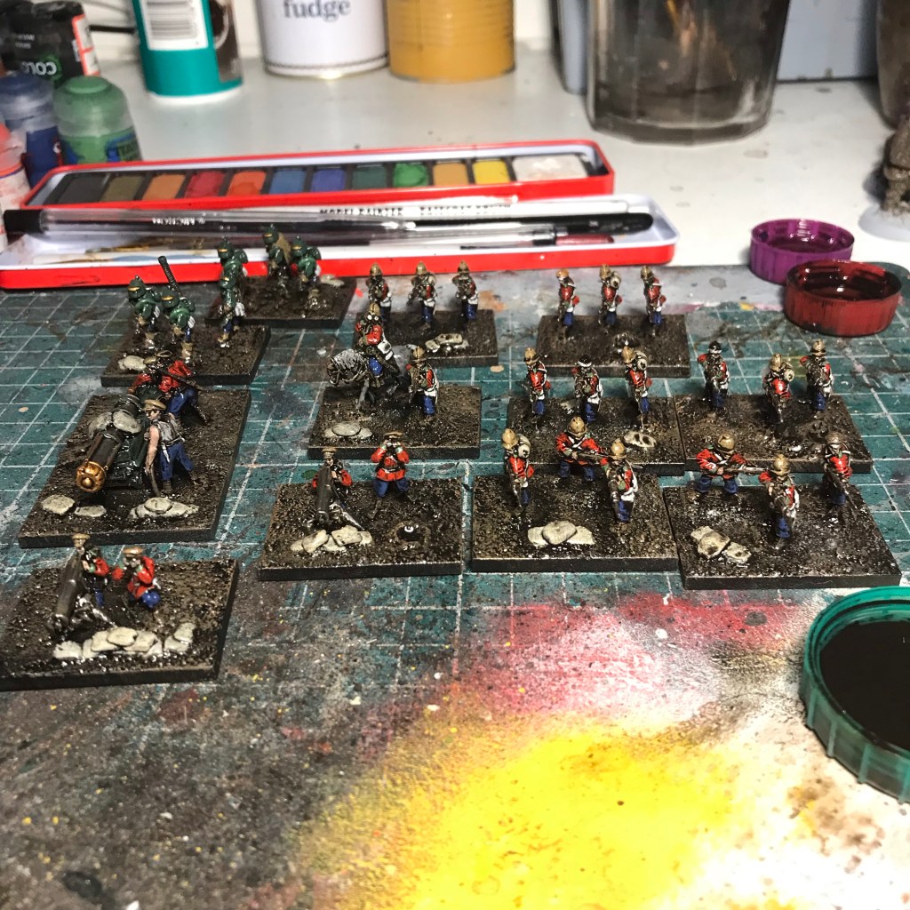 Sometimes you don’t need a specific rule set in mind, or battle to aim towards, sometimes you can just build and army for the sake of it. To this end I put together some 1800s Sci-fi Brits. There may well be a future attempt at some rules writing, but for now, just seeing them sat on my shelf is enough.