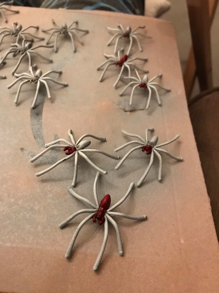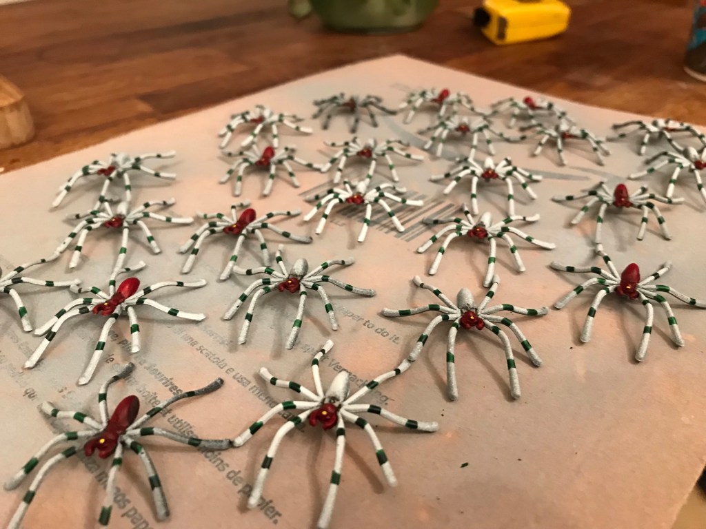 I promised the wife I’d paint them all in bright colours so she doesn’t mistake one of my toy spiders for the real thing.