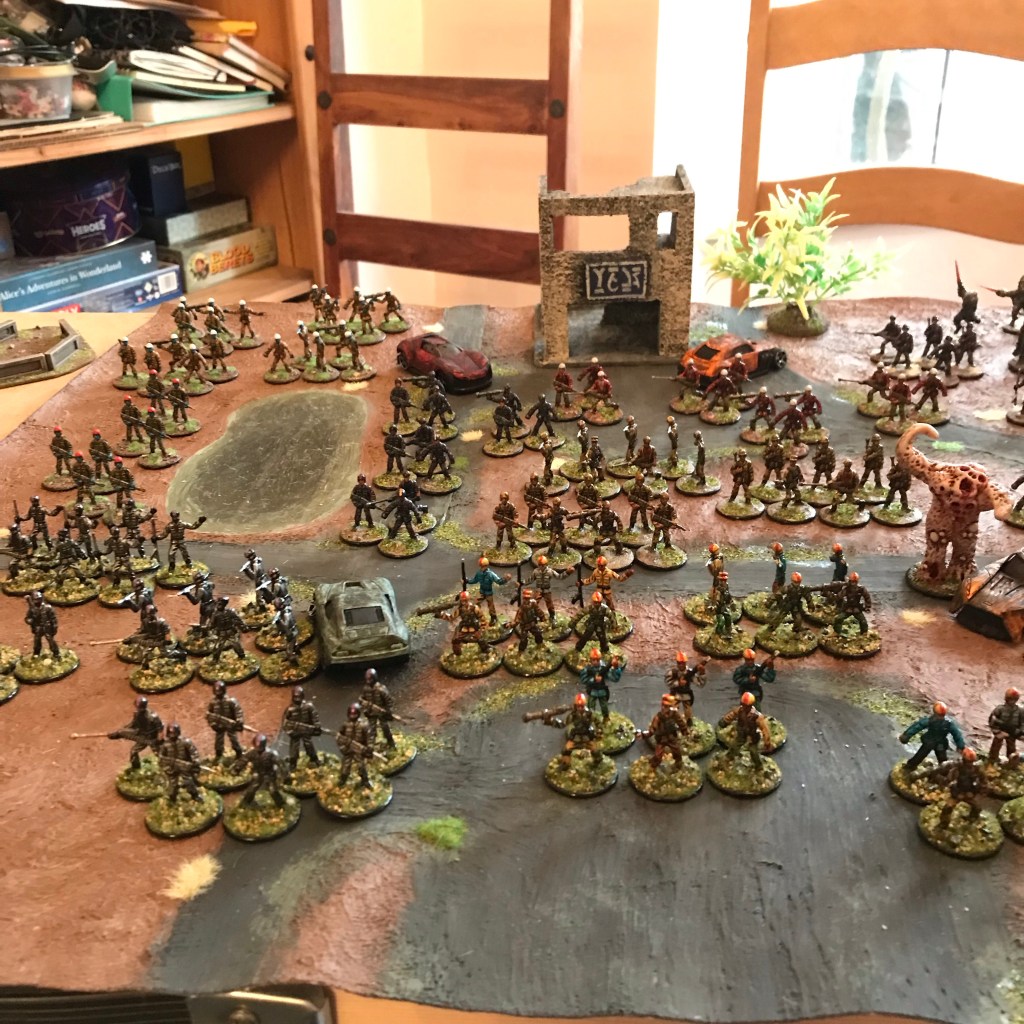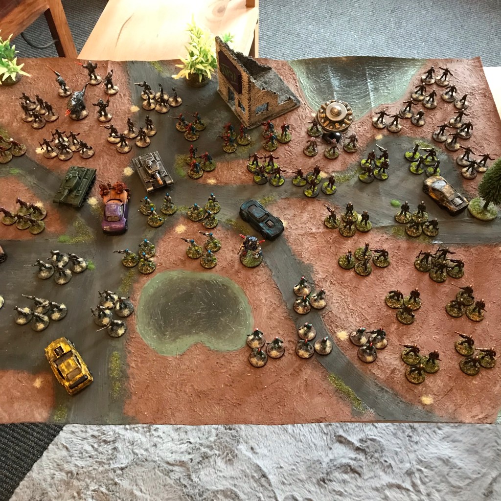 Wow, so you can fit it all on one table? I don’t think you are trying hard enough! But seriously, that’s some impressive work. If I had to add one extra element to the game I think it would be leaders – powerful enough to affect game play in some balanced way, but not over-powerful.