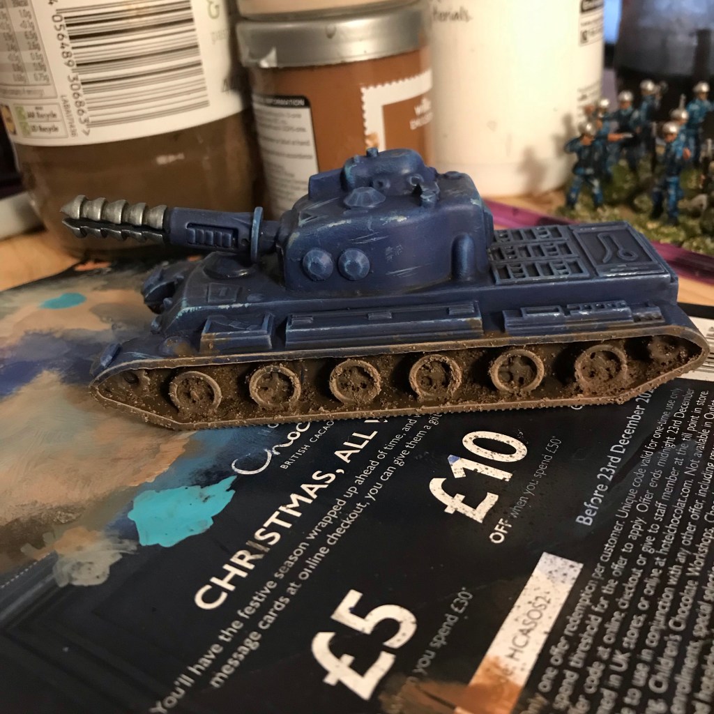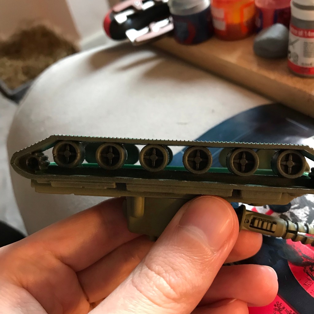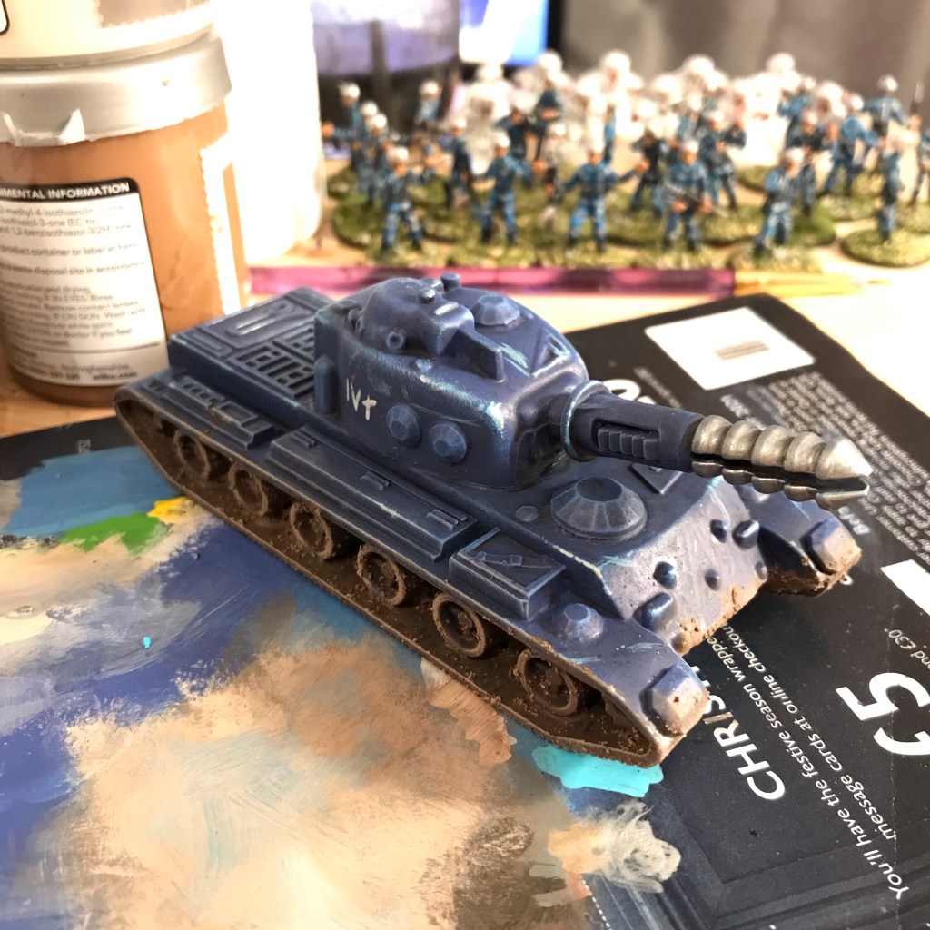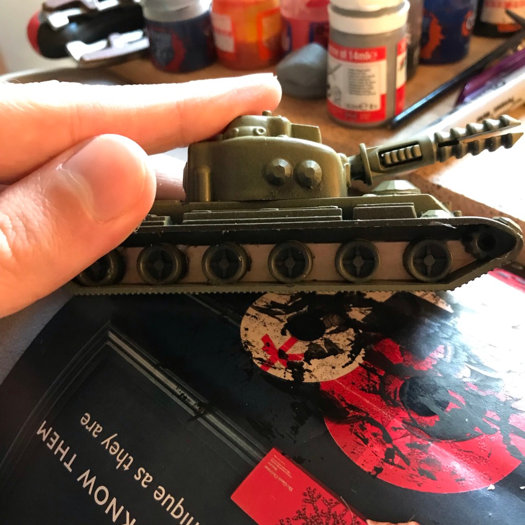 I suppose tanks are an odd one to have in sci-fi, at least I’ve always thought so. They’re fairly vulnerable in modern warfare let alone a few thousand years from now. But when you buy bags of discount shop army men you do tend to inadvertently build up a collection. My in universe justification is that since energy shields protect infantry from some rather deadly weapons then surely vehicle like tanks would make a little come back, since a vehicle could carry a better shield generator than a man. Plus they’d be easier to manufacture and maintain than your sci-fi mechs.