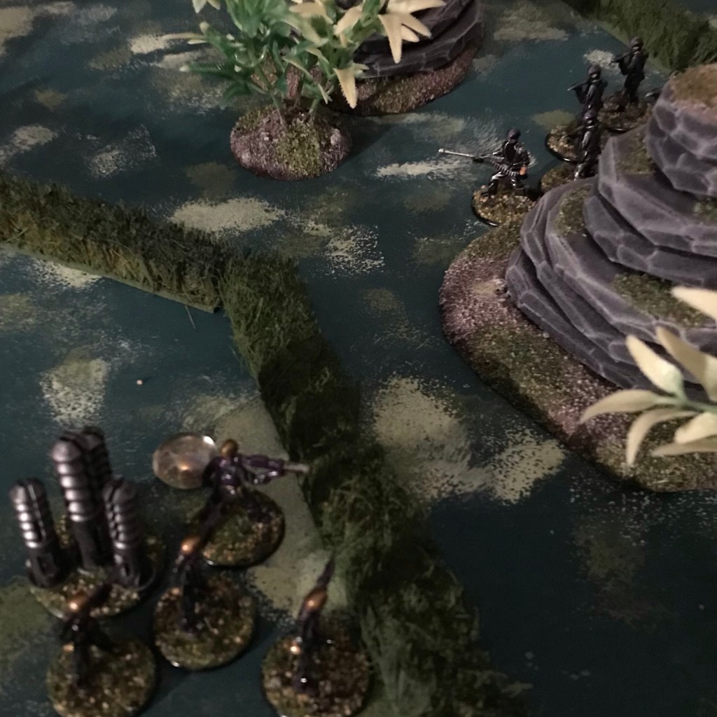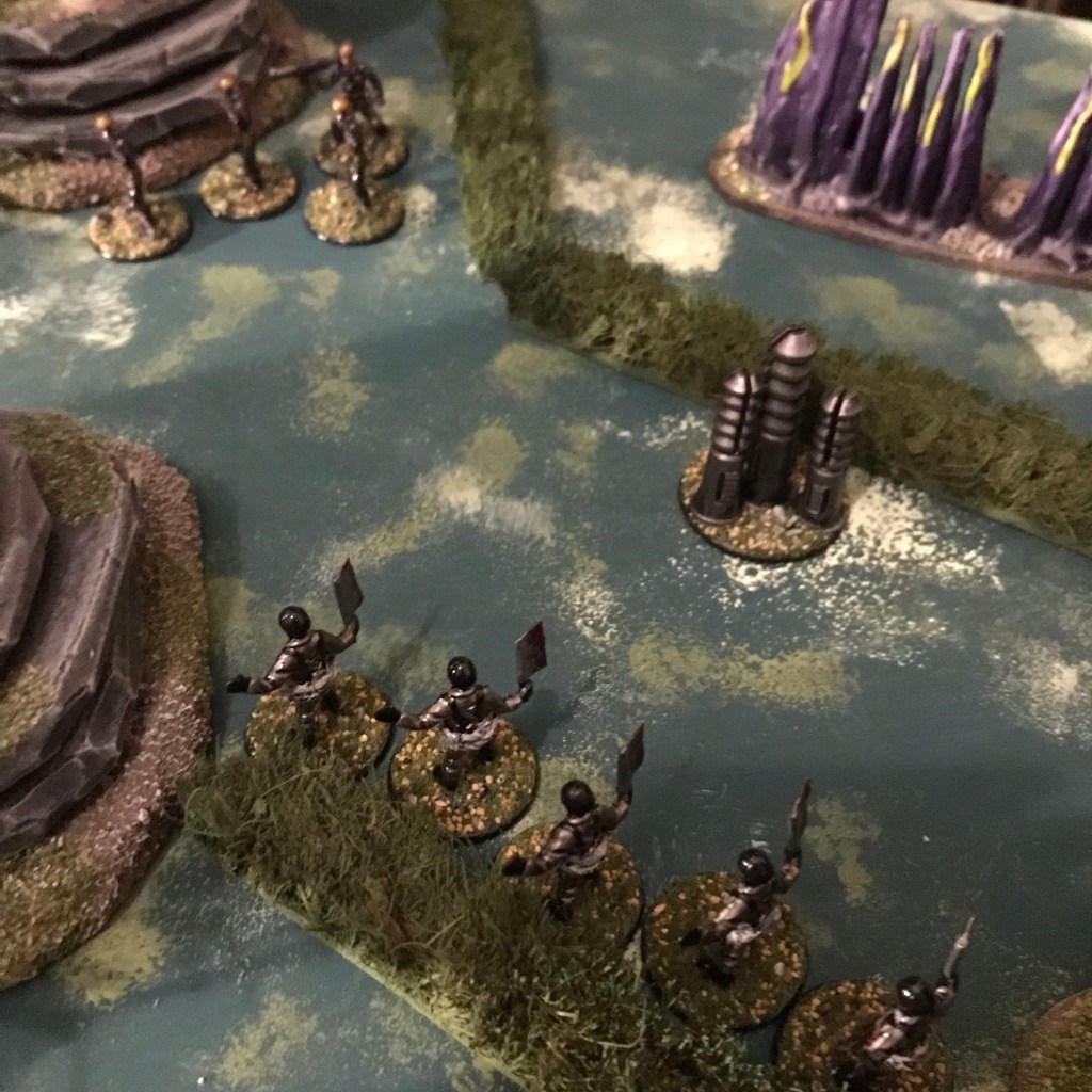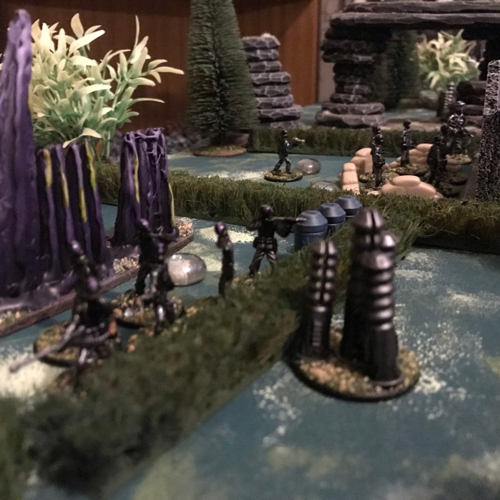 The red 5 is drawn next. A unit of Invaders decides to congregate around the objective on the far left.