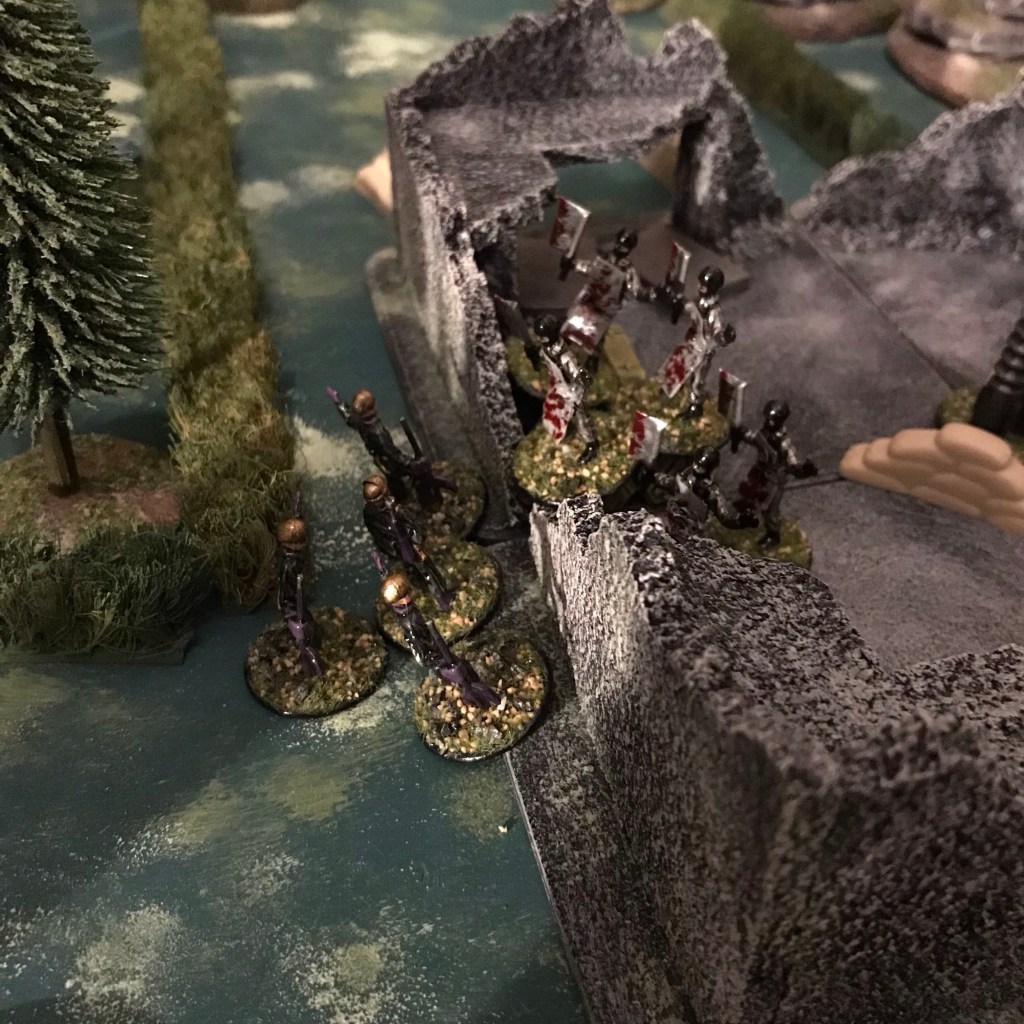 The Invaders on the left then charged the lone Cultist and finished him off. The League of Zandor extend their lead 14-8.