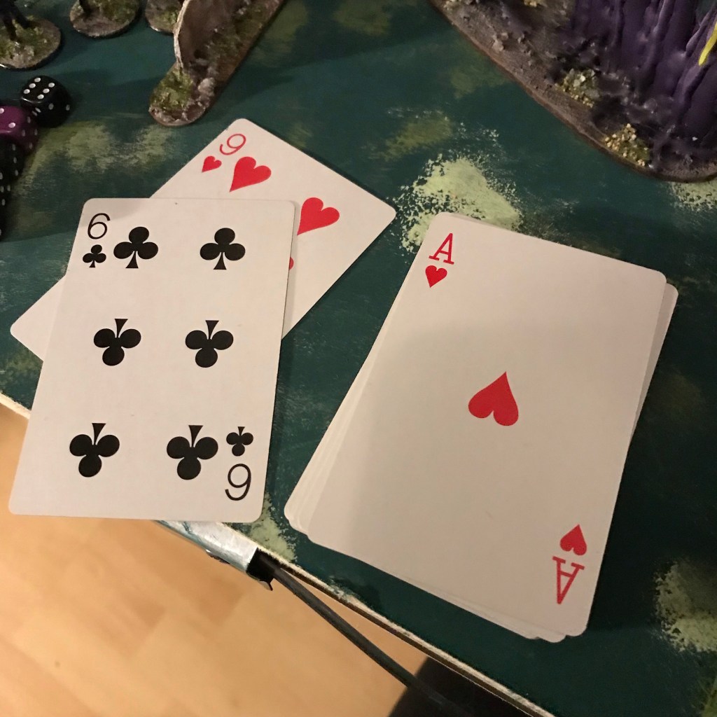 Mortan’s Men took the Clubs, League the Hearts. To quickly explain an Ace lets you activate 3 units, a face card 2 and a number card 1 unit.