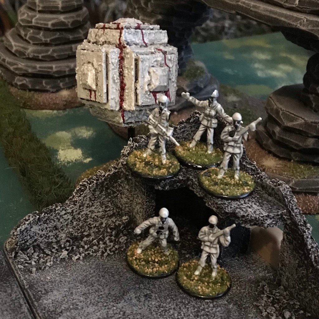 A squad of Ghosts with grenades and a repeater for 218 points. I didn’t have any ghosts modelled with a repeater like my other forces so I’m using the figure with the SMG like weapon to count as that. Which technically in Deathzap just comes under ‘small arms’ as it would be a sub or light repeater.