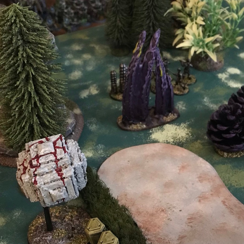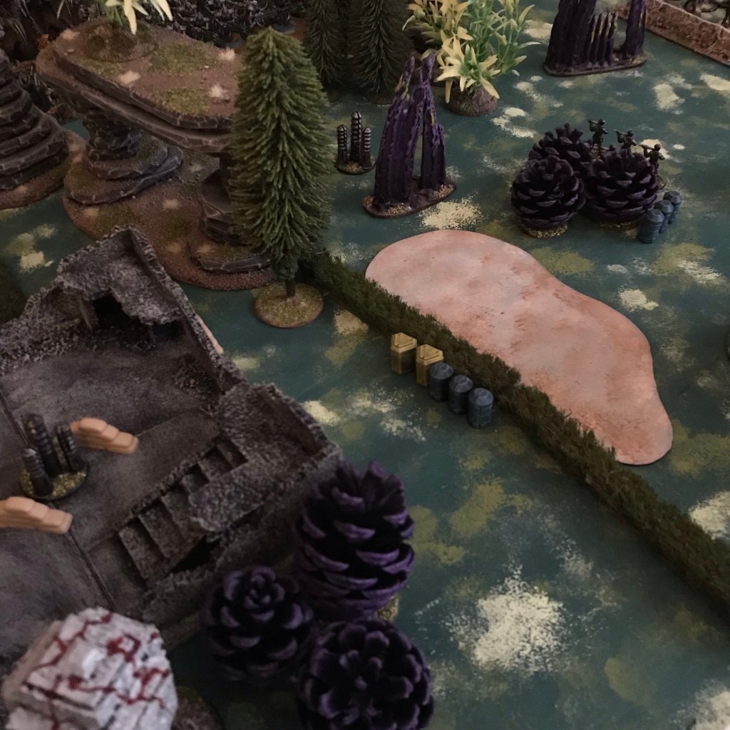 I’ll be playing with the same scenario set up as before – 3vps for destroying a unit and for activating an objective you get 1vp per 6” away from your home board edge the objective is.