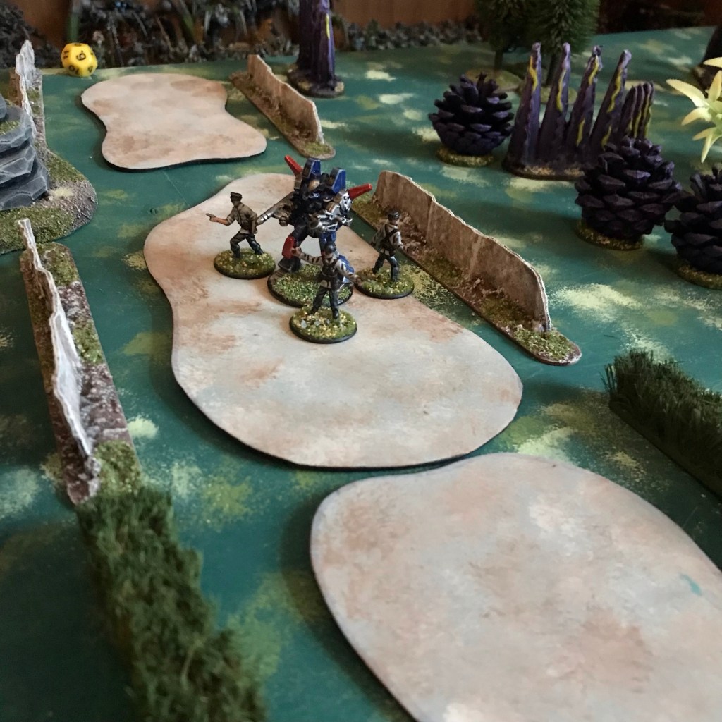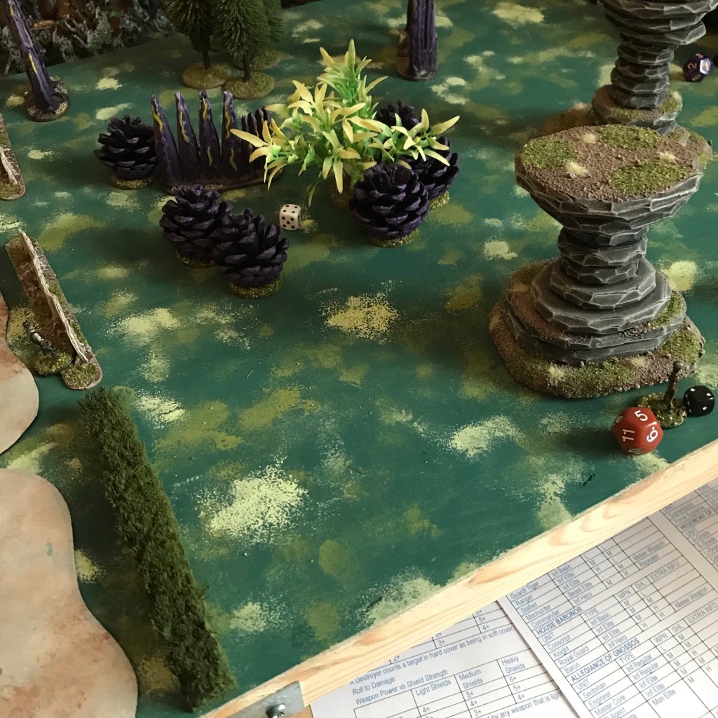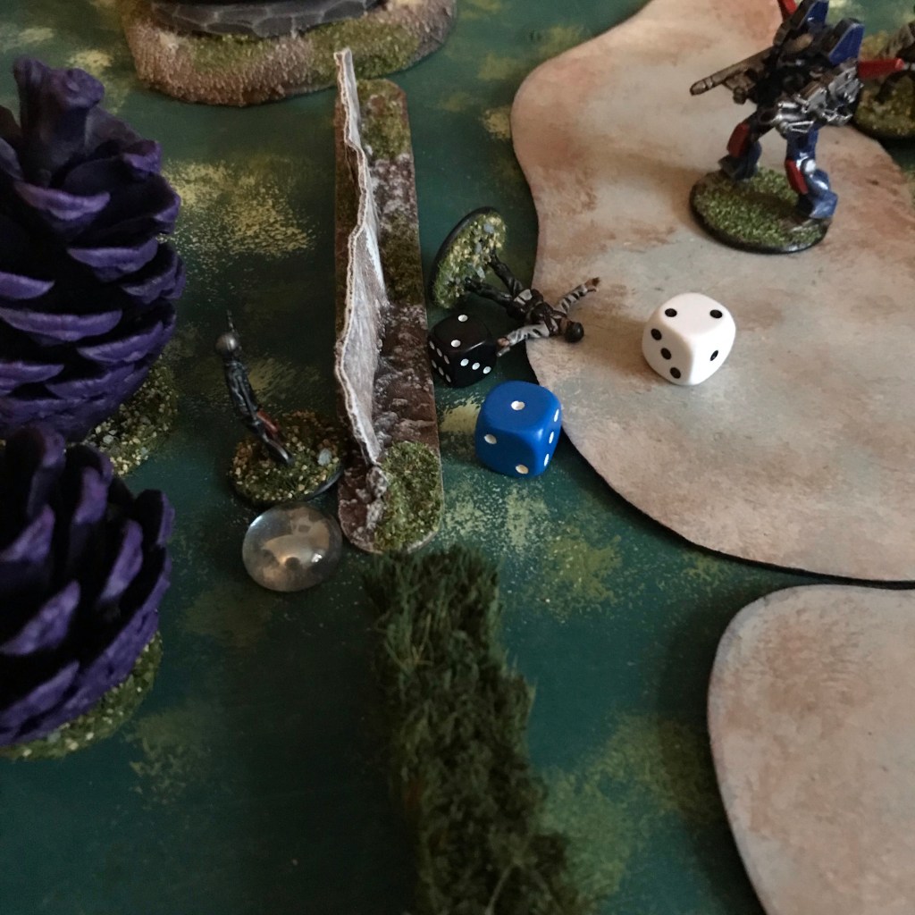 I’ve placed D12s evenly around the edge of the battlefield and so when support does arrive I’ll roll for the location it turns up.