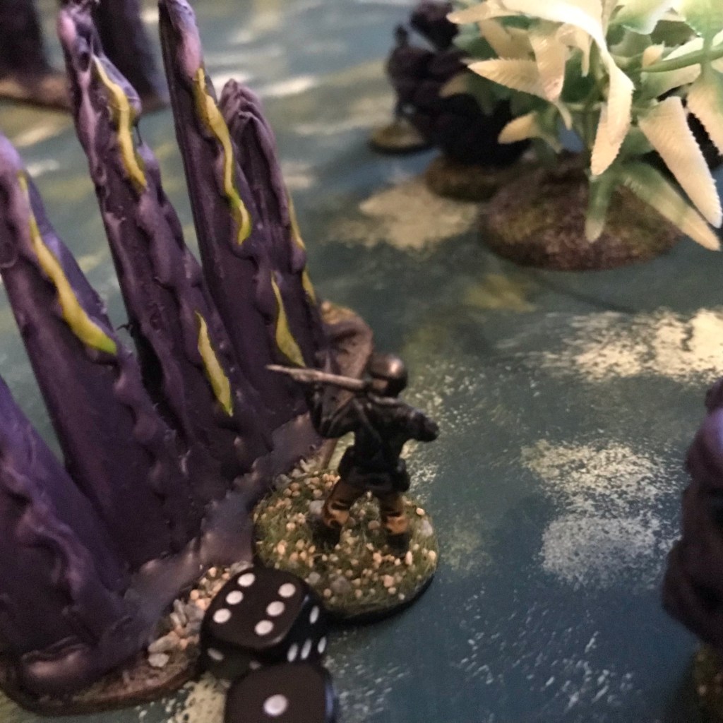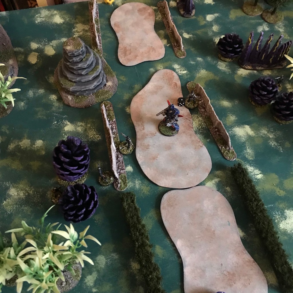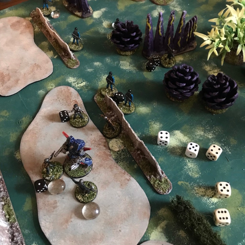 I’ve placed D12s evenly around the edge of the battlefield and so when support does arrive I’ll roll for the location it turns up.