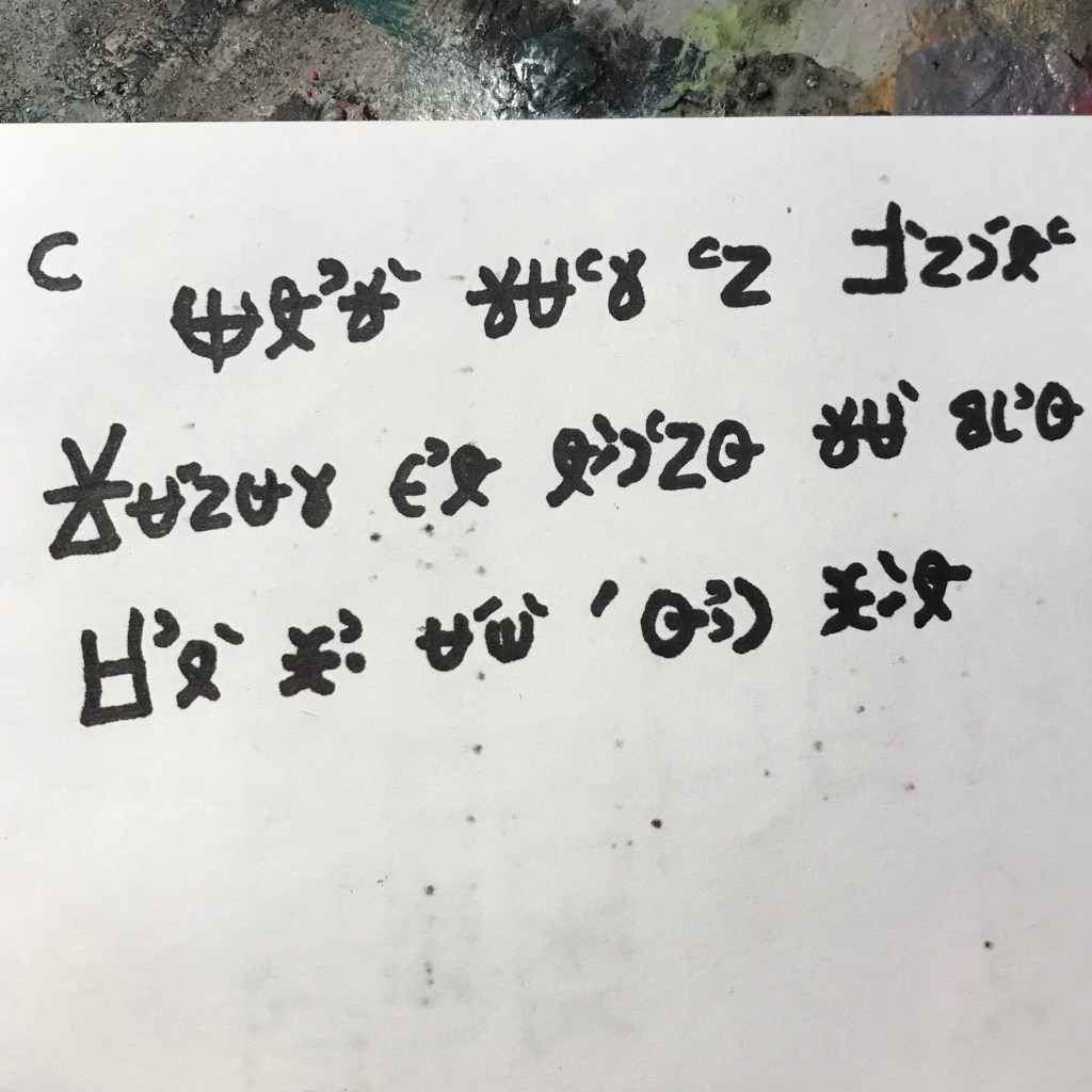 So I decided to produce a cipher much like Aurebesh from Star Wars. Meaning that the language will be essentially English, but it will use different letters so it will still have an alien but consistent look. Here’s what I scribbled on a scrap piece of paper, the first iteration of Jendari: