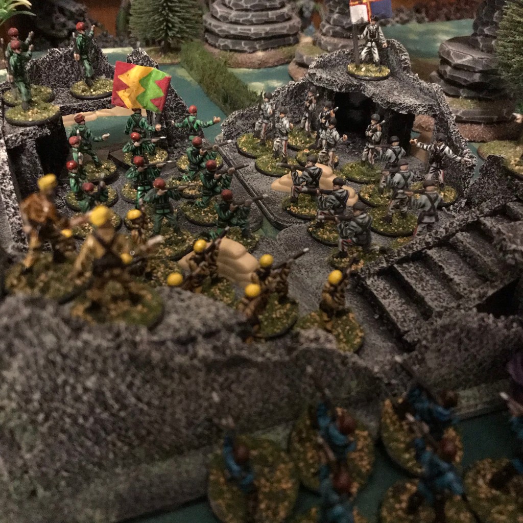 As a side note you might notice the farmhouse and bridge are painted wooden toy blocks, it’s a really good way to make modular oldschool wargames terrain, I really need to make more!
