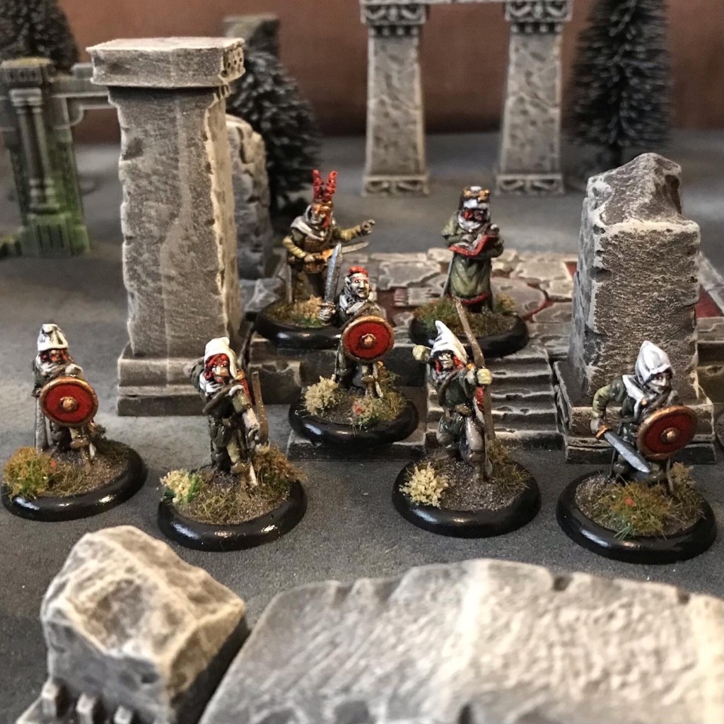 They’re mostly an exercise in seeing if a horde is bad or overpowered in the current rules. I’m also eyeing up some of Irregular’s trolls or big robots to see if very few figures, maybe three maximum is viable too. The Shaman’s protective aura is a 3” bubble of -1 to hit and Ethereal means rolls of 2 or 3 cannot hurt him, making him fairly tanky. The Boss’ Commanding rule means that any friendly fighters that activate within 3” of him can add 1 to their actions roll.