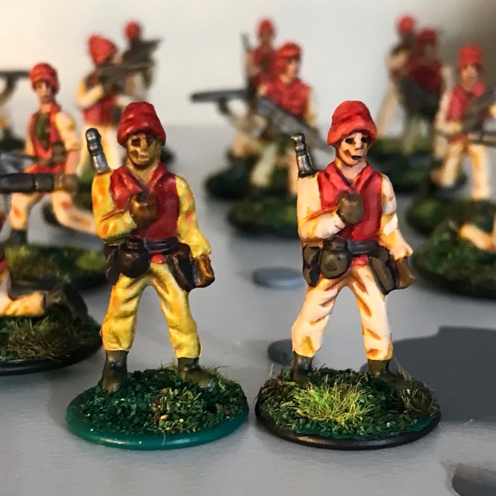 Sparked on by this new ruleset I’ve even started tarting up my old Deathzap figures originally painted quickly using contrast paints. My Reddinists now look a little less like they work for Ronald MacDonald.