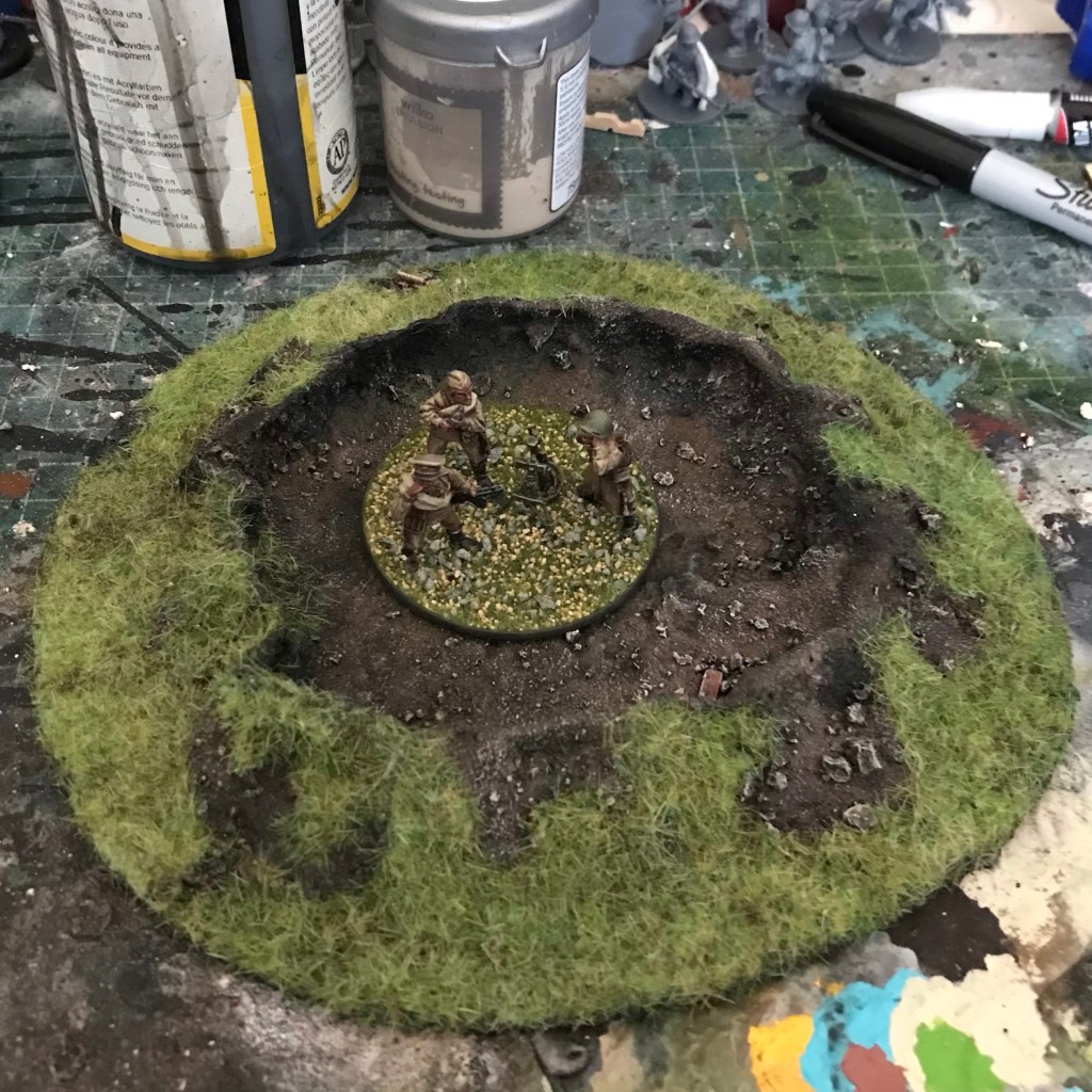 Brilliant! I think I prefer the non-flocked stage – it makes the uplift around the crater look more like the soil that rains down after the explosion. If you see what I mean!