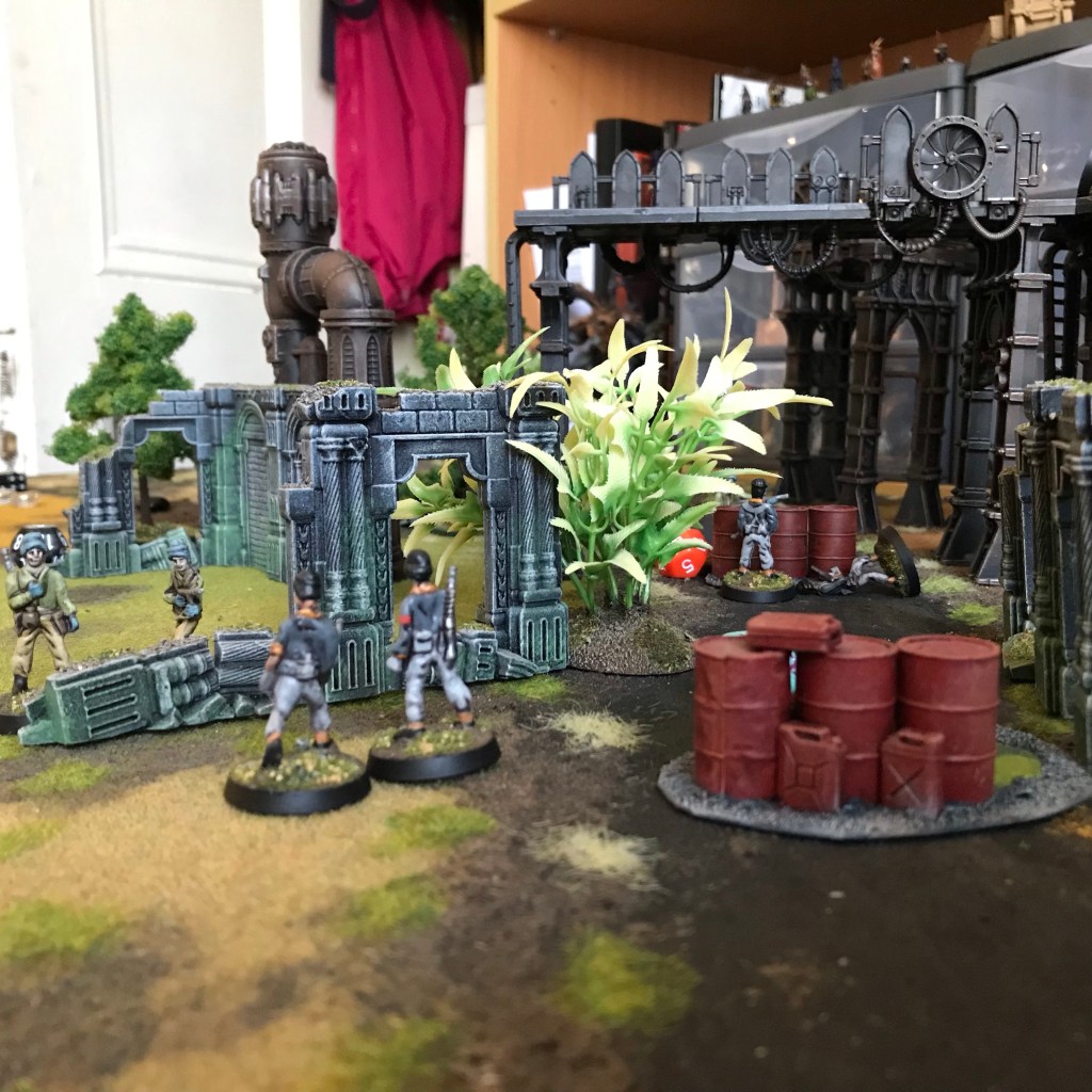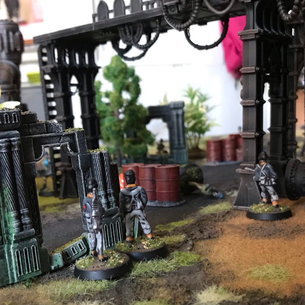 One change will be melee. I think melee should be very decisive. There was a lot of toing and froing when the figures got close up to each other, but once they’re essentially at point blank I think either one needs to die, or retreat rather quickly. The slow melee is a hang on from my Universal Skirmish rules, and it makes sense there, there’s a big focus on melee. But in modern/futuristic combat (other than in Dune) melee should take the back seat.