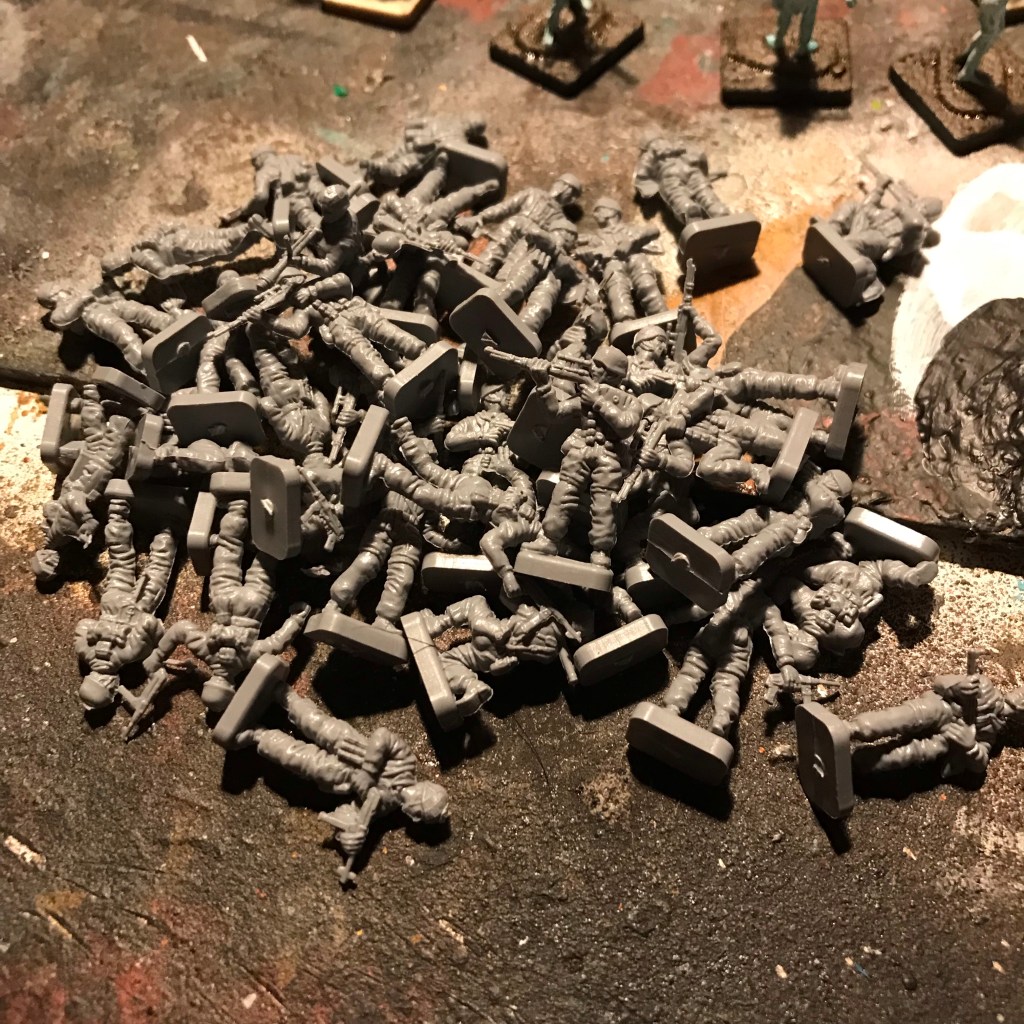 I’m weirdly a big fan of this box, despite the figures being oddly posed, it might just be their chunkier proportions… anyway first I set about making some cuts to the weapons to try and de-WW2 them, rifles were cut short, magazines chopped off etc.