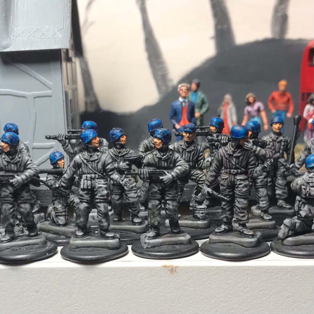 The other day while feeing overwhelmed with my mini collection and wishing I could still play games with the imagination and enthusiasm of a ten year old I considered a spot of Asquith style comfortable wargaming, but with a sci-fi flavour. Out came the Fallschirmjager once again… but how to comfortably paint the 40 or so I had?