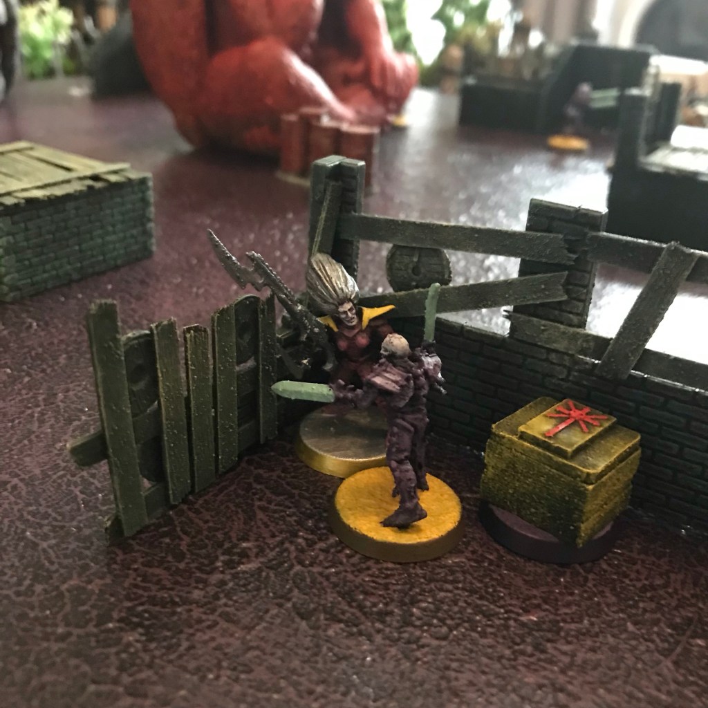 Where things become very un-straightforward (bentbackward?), is in the class and race system. We started out with the basics, thief, warrior, wizard etc, and simple races – human, elf, dwarf, and slowly those lists grew, got new more thematic names, classes became professions, races became fleshtypes, until we had twenty of each. These aren’t simple stat alterations but a list of special rules and abilities. For example one of the simpler professions is Assassin: Critically hits on a natural 5 or 6. They are not deployed as normal but can be put anywhere in play before their first activation roll. And one of the stranger professions is Puppeteer: Once per activation for one action move this incarn or any incarn within 10 to anywhere else within 10. Incarn’s are miniatures by the way. A simple fleshtype is a Brutal: +3 to their activation roll if within 5 of an enemy incarn. And a stranger one is a Shadow: When in base contact with an incarn, spend 3 actions to move into base contact with any other incarn. Like I said there’s twenty of each and each of your minis takes two of each. Taking that alongside our five levels and ten pieces of equipment that makes a possible 72,922,000 builds if you don’t take more than two pieces of equipment per figure that is.