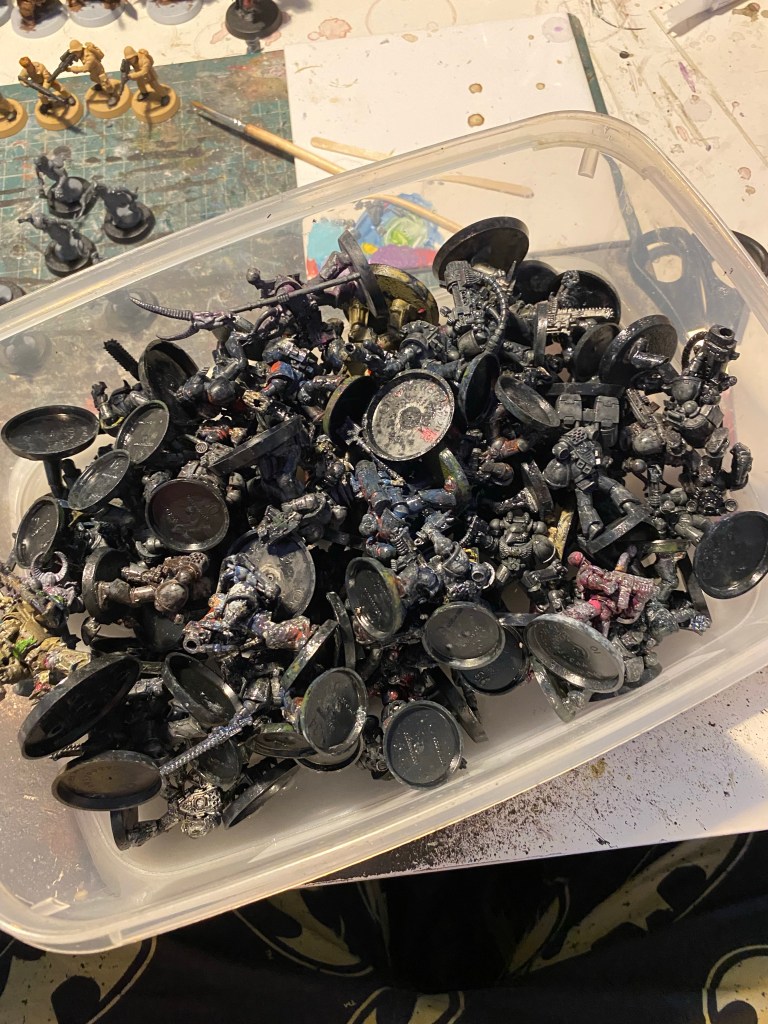 That’s roughly £320 of Warhammer kits stripped back to bare plastic. Many of my figures are still mounted on 25mm bases which gives some indication of how long I’ve had them.