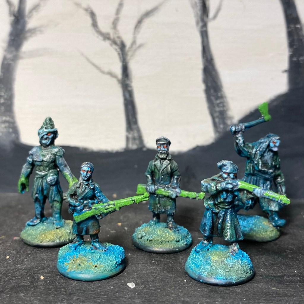 Whilst I’m not a big fan of the tiny scale I love how you painted these. You held them together with the color scheme, which is simple but effective. I love the color of the bases!