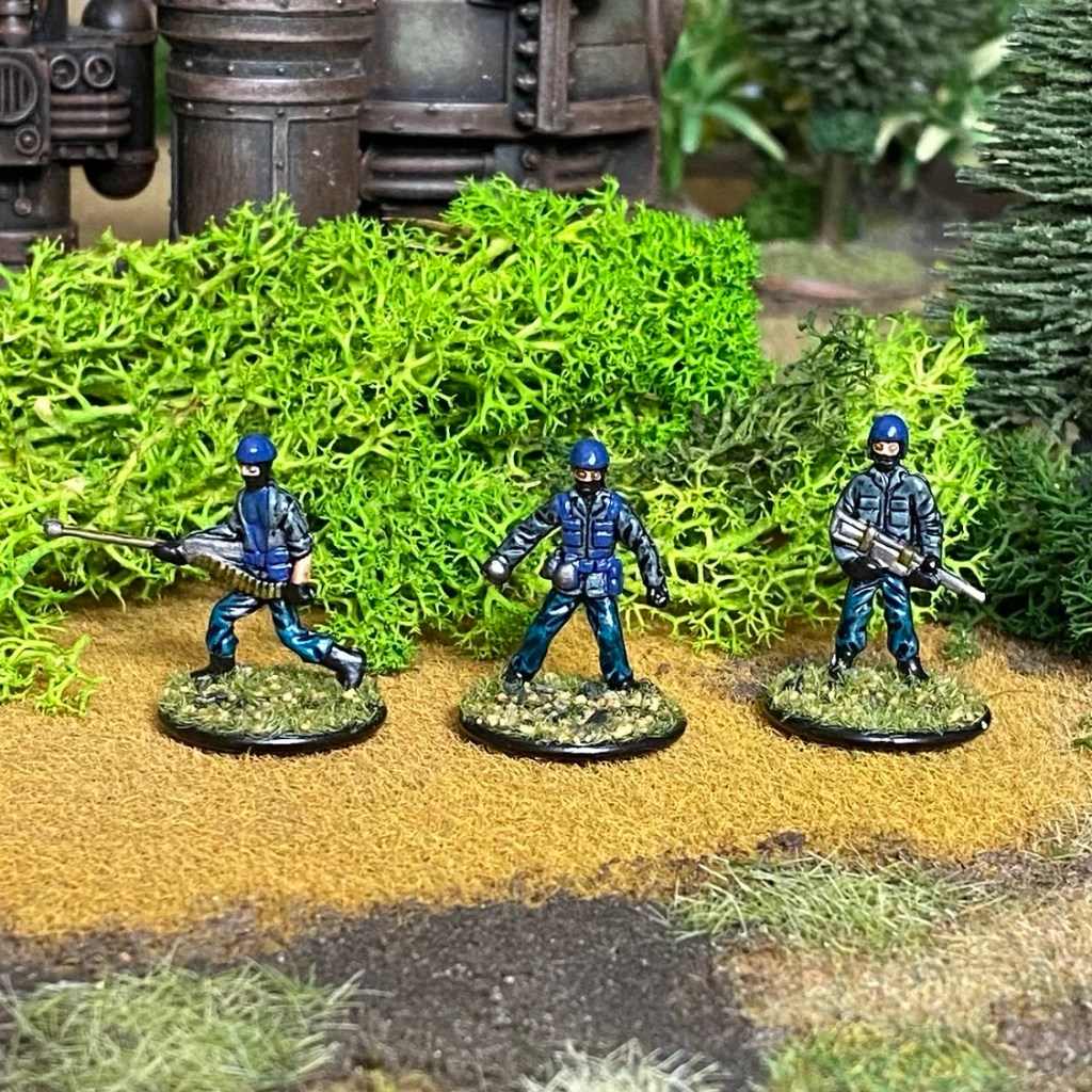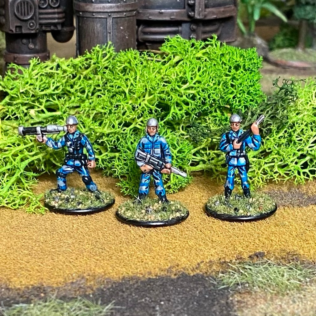 Jendari Rangers are the elite special forces of the Collective. Much like the JDA their uniforms can vary wildly and are often suited to different campaigns or theatres. Generally speaking however, their uniforms are a mixture of dark blues and greys, black boots and blue equipment pouches.