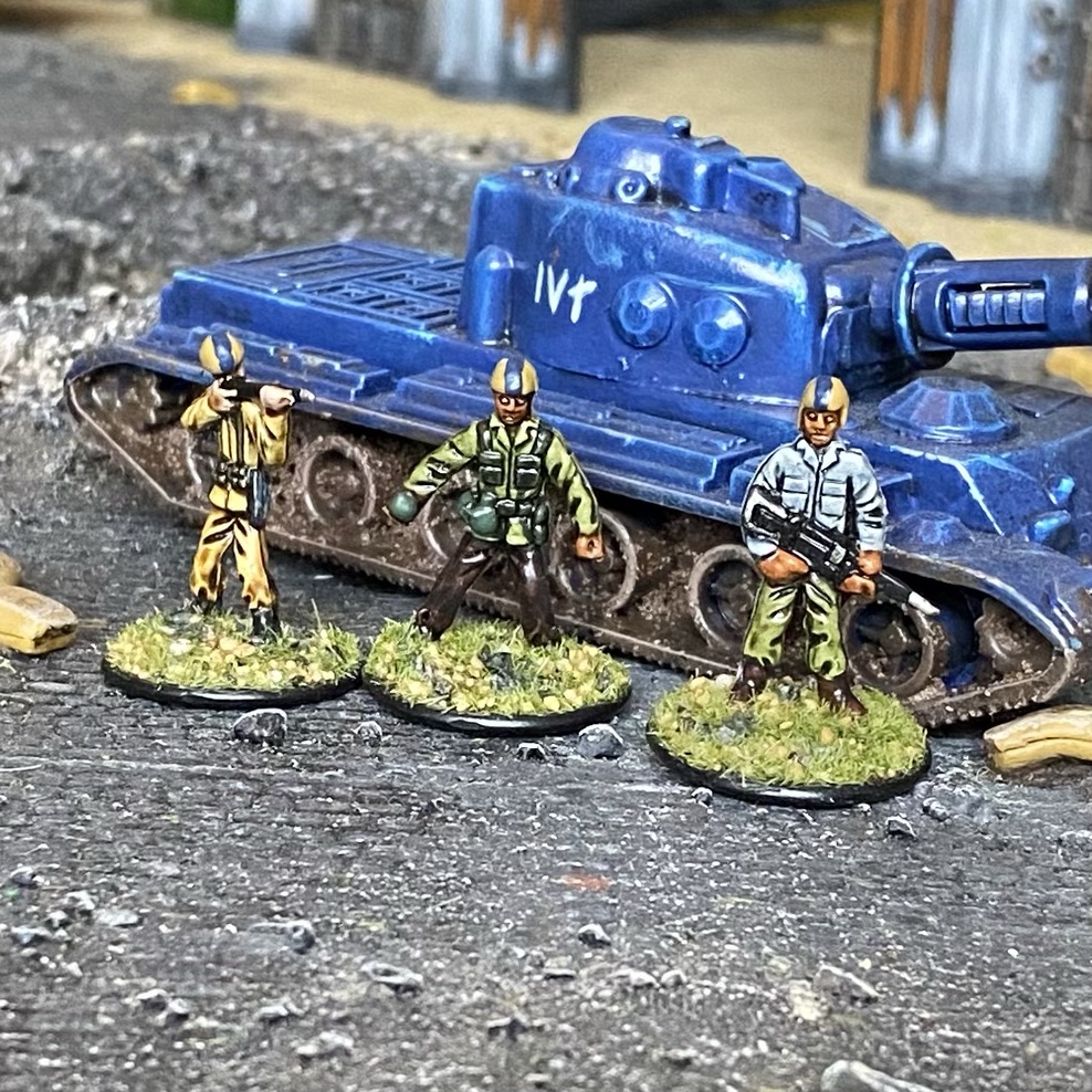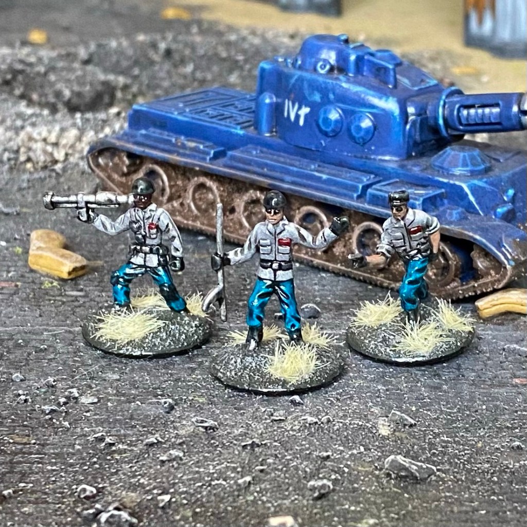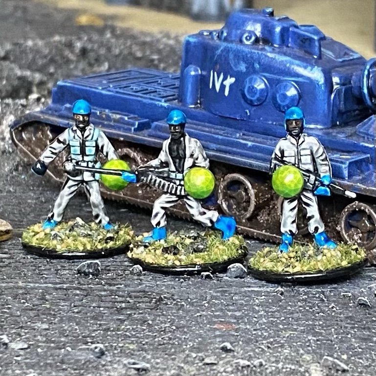 Instead of countries the Allegiance of Gnossos is divided up into Sectors and each Sector has its own army. The uniforms of the Sector armies generally have the same mix of colours, black, white, blues and greys, however in different combinations. The SA soldiers above are from the 5th Sector Vol-Zo.