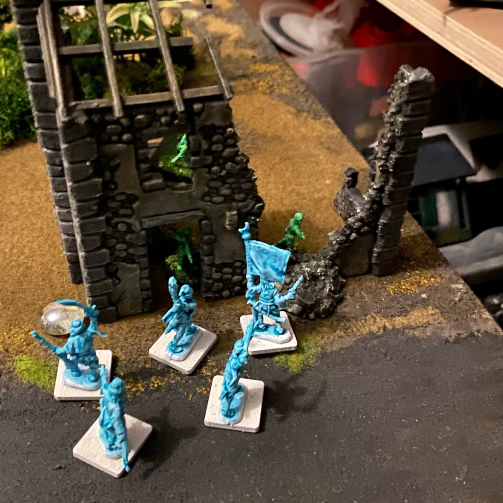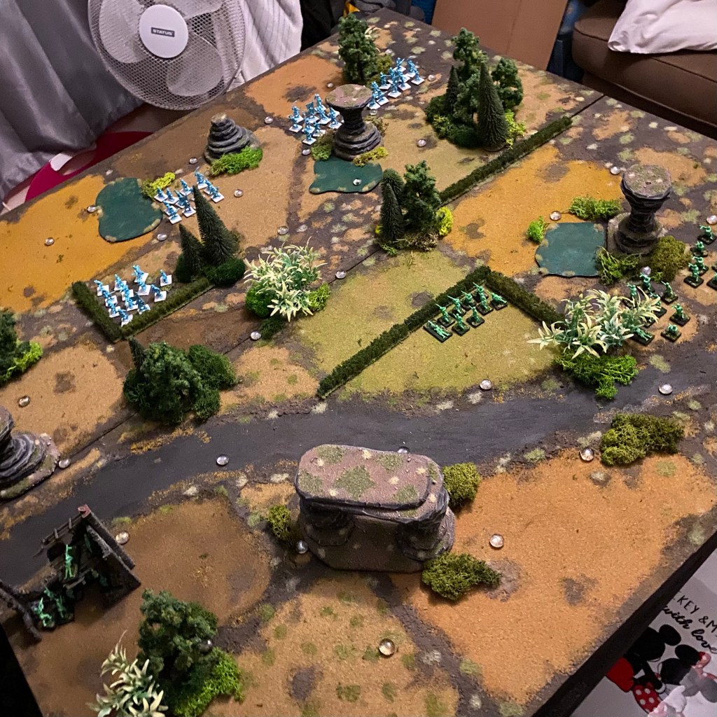 It’s strange playing such a big grid based game, I instinctively went for my trusty tape measure only to realise it was completely unnecessary. A 4’x4’ table makes an 8×8 grid of 6” squares, so you could replicate this game on a chessboard with teeny tiny figures.