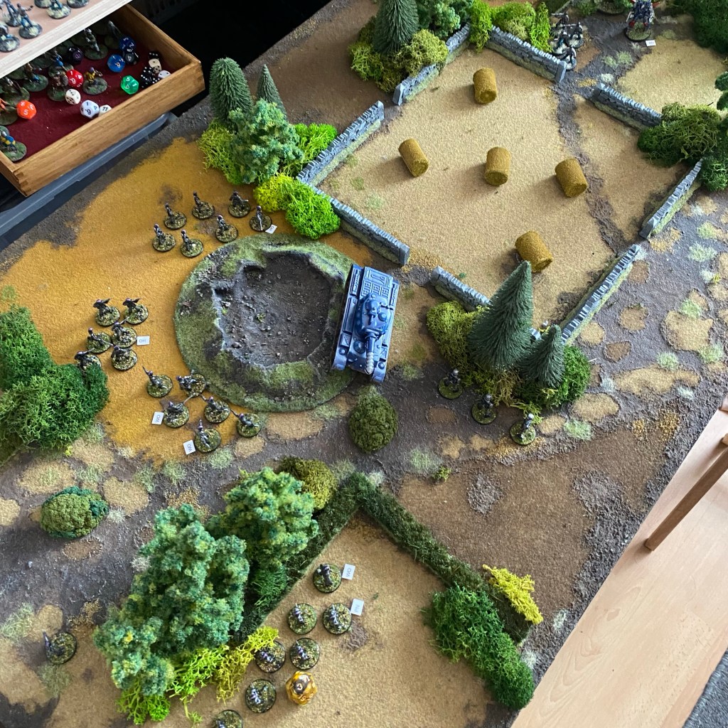 I’ve decided to have the majority of rolls be 2d10, I like that with a 2d10 your outside chances (2s or 20s) are 1 in 100. You really can have things be extremely difficult to pull off, but not so difficult they’ll never happen. In my test game I had an extremely lucky shot, cause a squad to lose its nerve in morale and run off the board. It was a brilliantly cinematic moment.