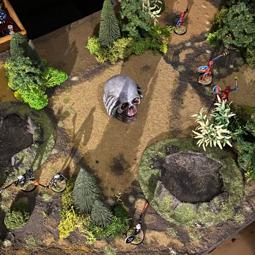Ziff: The action’s heating up now as both sides are closing in on the monument. Oryn takes the first shot, his eye beam just missing Gorvid as he dashes towards the big skull.
