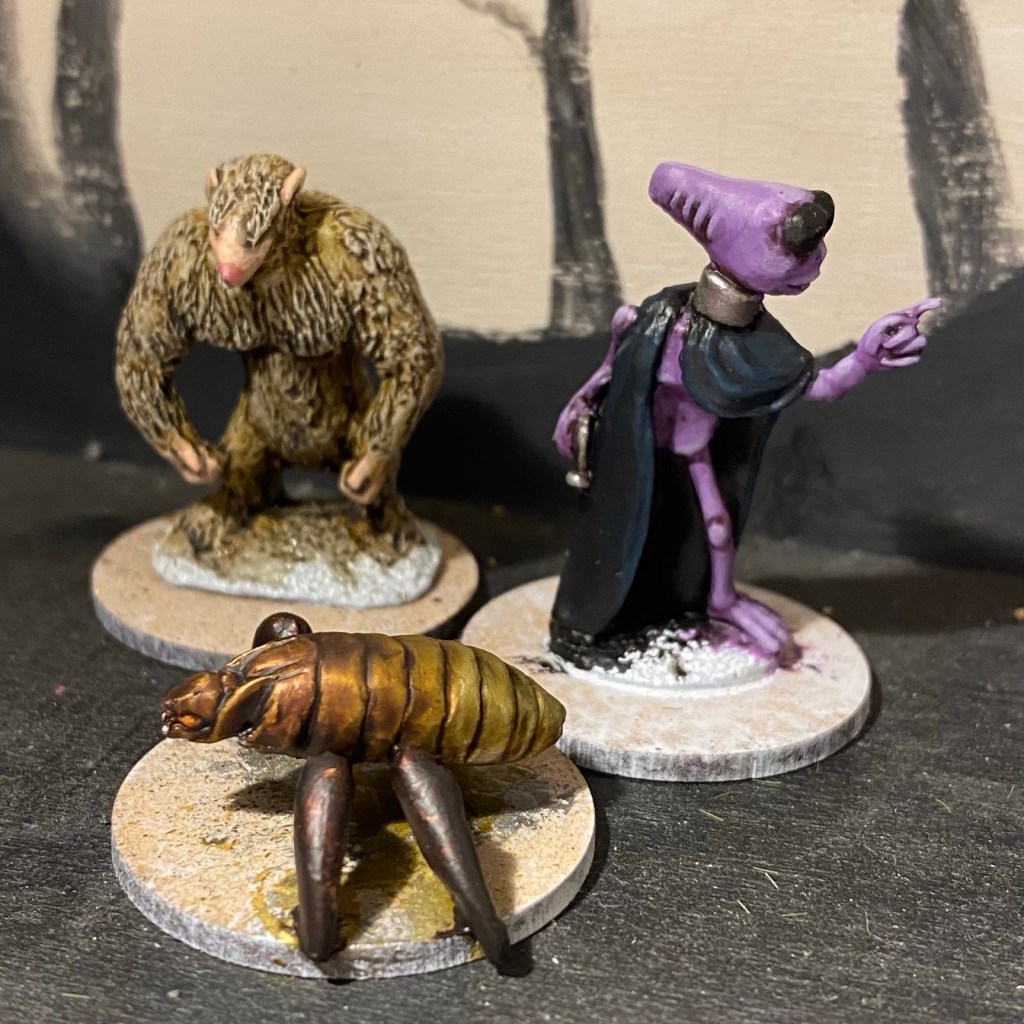 So I’ve recovered from the plague, and in a post fevered state threw together yet another small skirmish game. I suppose you can blame this on the fact that Darkfell was really designed to be a Mordheim replacement and for some reason I’ve been playing it with superhero-ish figures, the two just don’t quite fit together in a satisfying way. Also I am enjoying ordering random figures there are few old or bad pictures of, or no pictures at all on Irregular Miniatures.