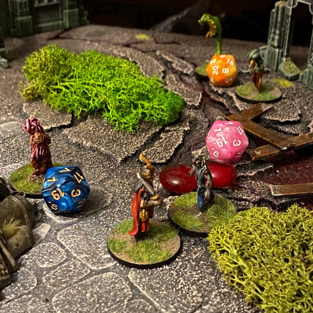 Figures get two stats, ‘Manoeuvre’ and ‘Combat’. I started out with my usual Fighter, Skirmisher, Shooter, but this gave me more granularity, which felt nice with all the random figures I’ve been using. Both stats do lots of things, Manoeuvre affects the order figures activate in, their movement speed and their armour saves. Combat affects all attacks (duh!) high combat values are better at melee, low are better at range. Both Combat can be any value from 1-6 and Manoeuvre can be any value from 1-5.