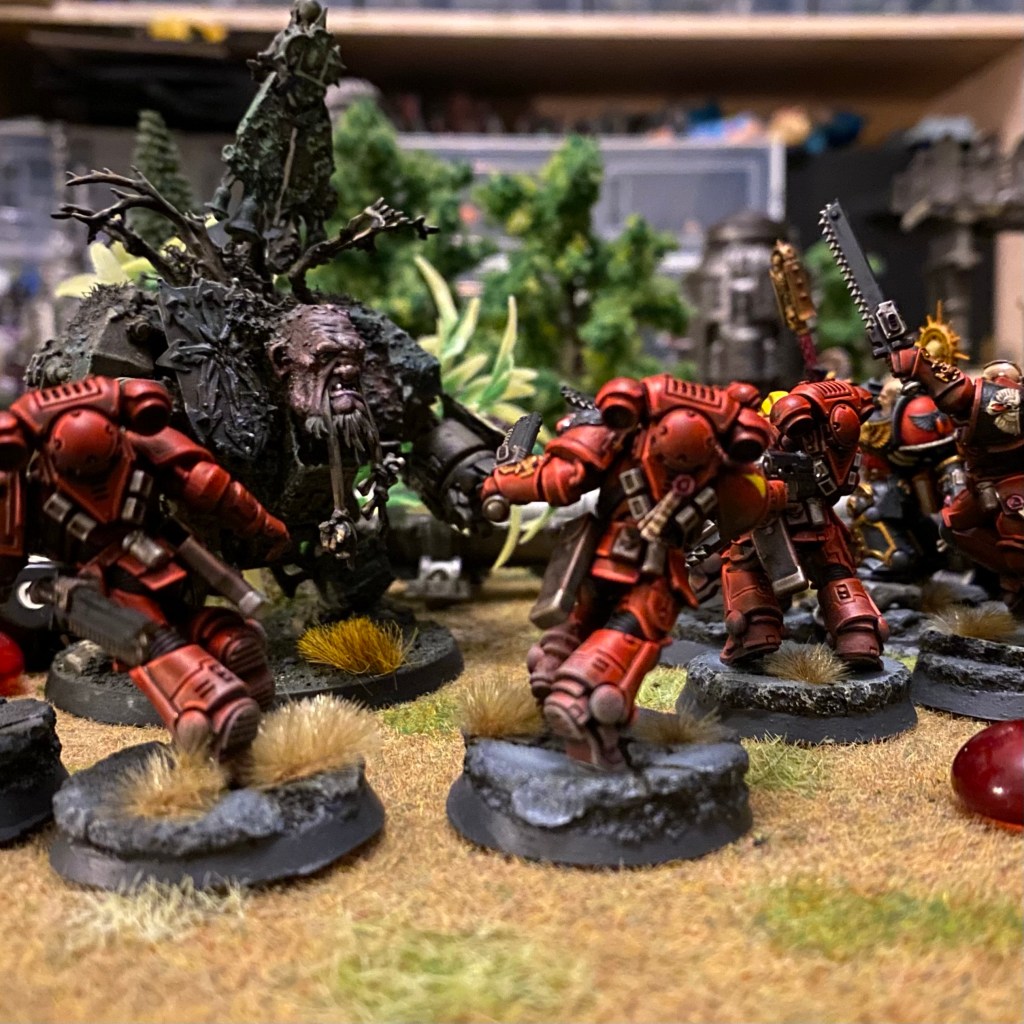 The rest of the model was built out with spare chaos bits, chain, and clump foliage. I was rather naughty filling gaps with toilet paper and super glue. Thankfully my hobby space is well ventilated, as the loo roll and glue combo does smoke a bit.